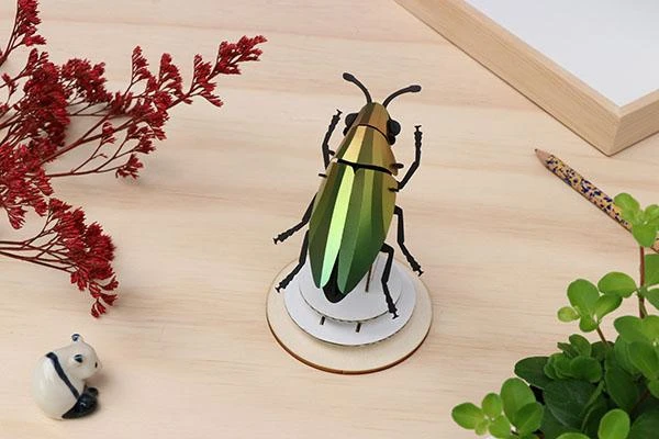 Der Jewel Beetle, zu Deutsch Schmuckkäfer, aus diesem Bastelset besticht durch seine schillernden Flügel.