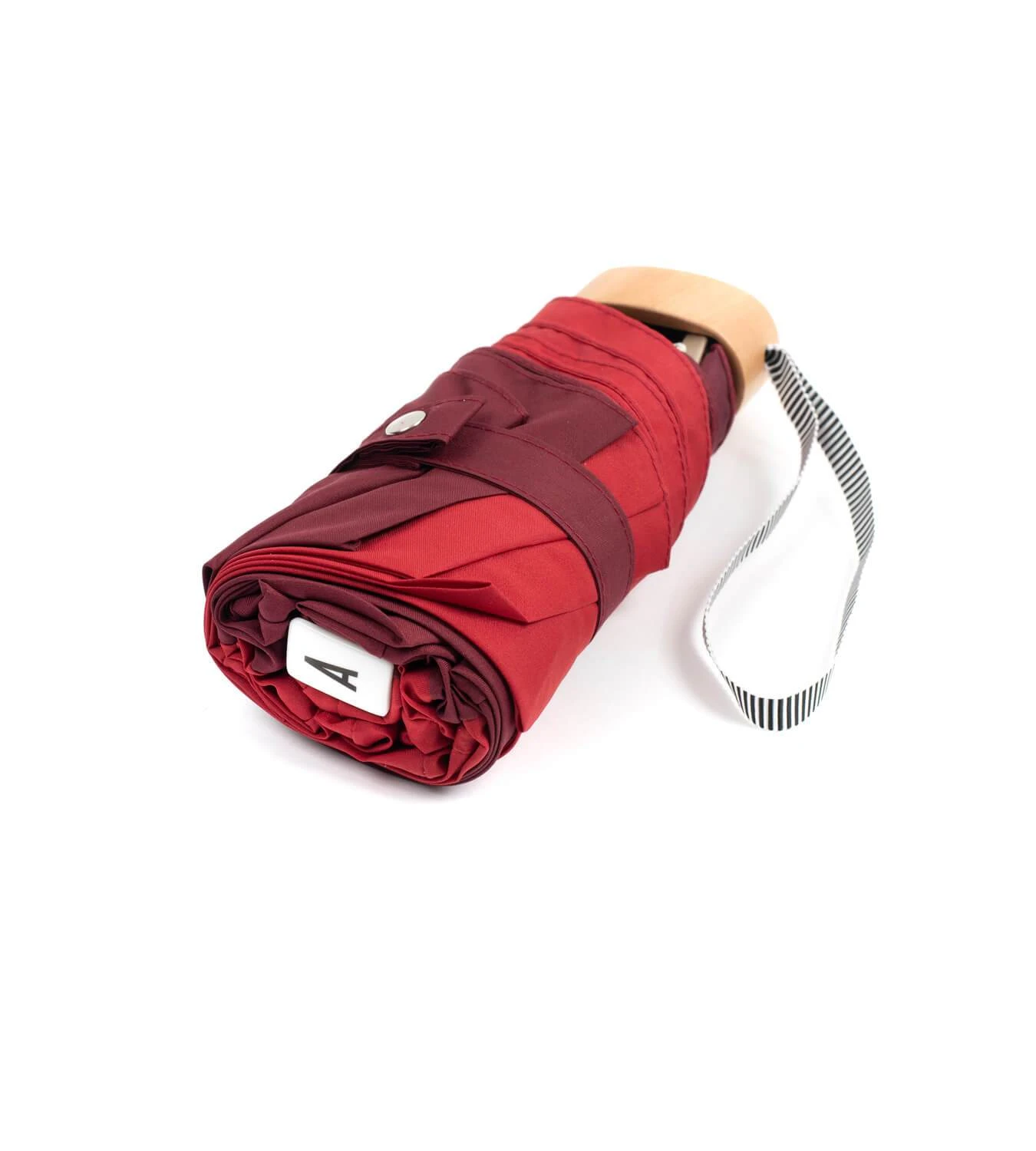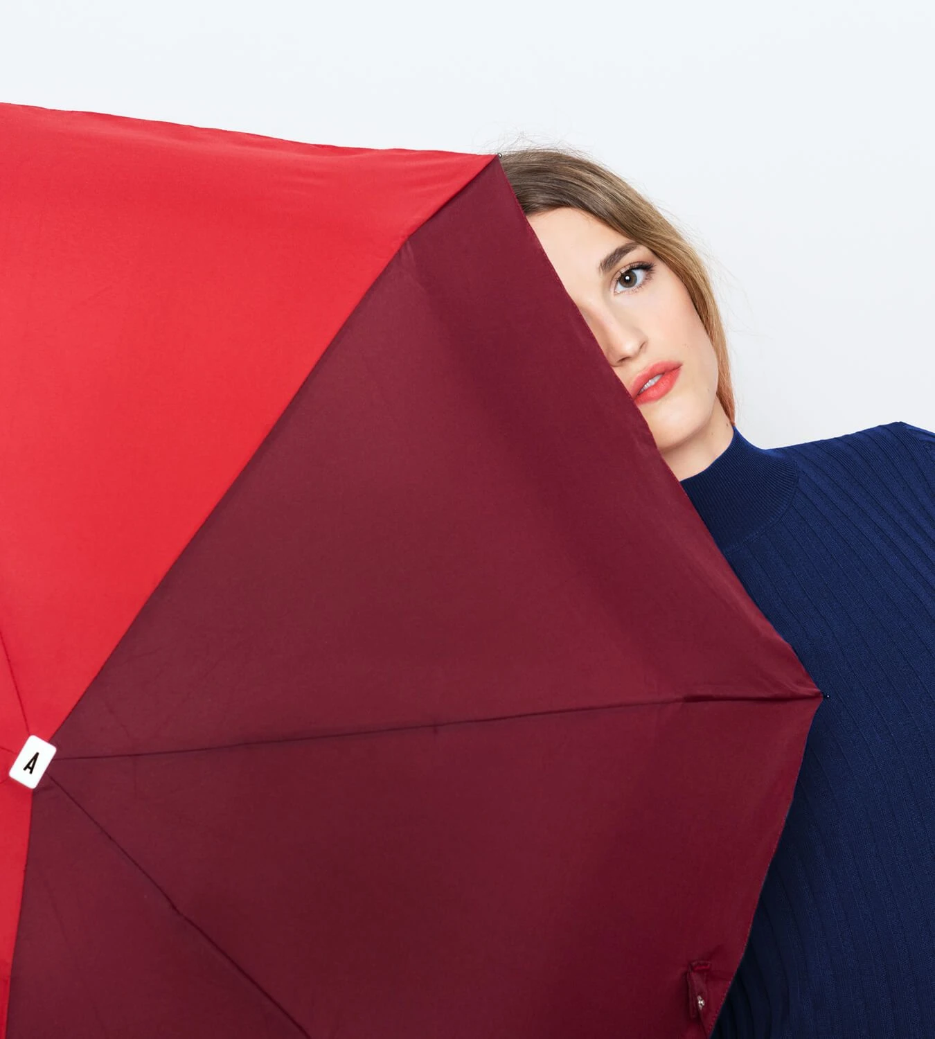 JULES verbindet bordeaux- rot mit knalligem rot. Ein Schirm, der ganz und gar nicht langweil daher kommt.