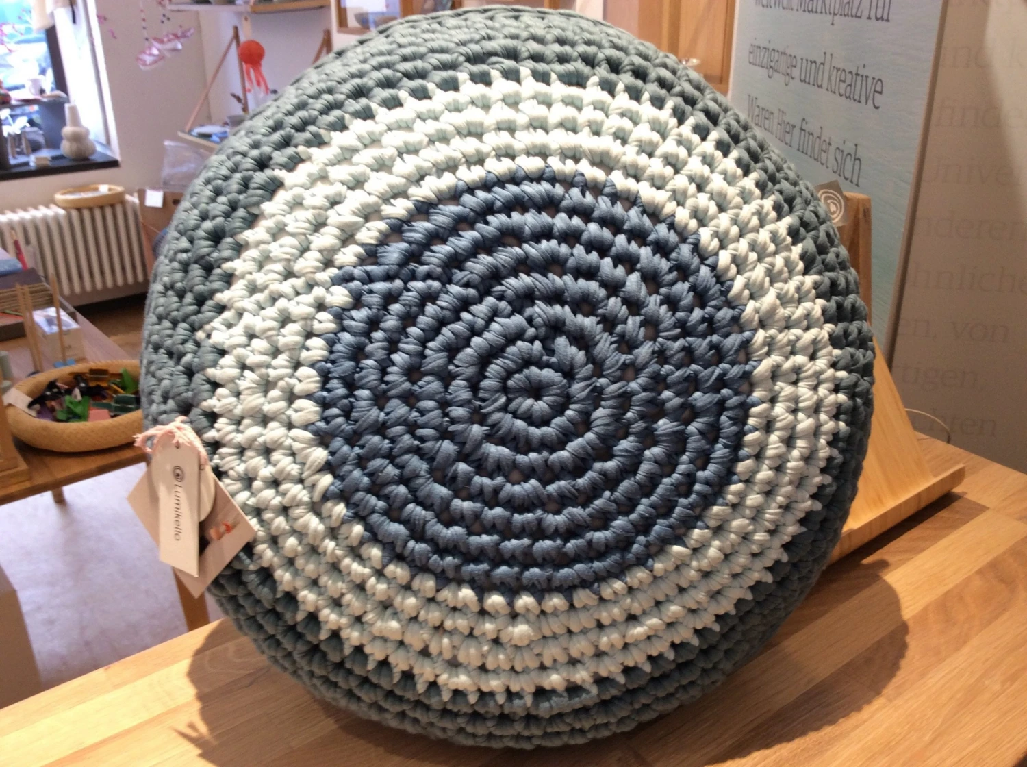 Großes Kissen von Lumikello in schönem Petrol in Kombination mit graublau.
