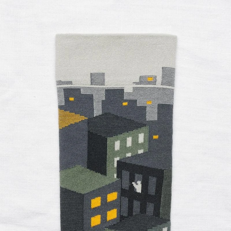 Tolle Motivsocken von Bonne Maison mit einer grauen Großstadtszene. Diese Socken der neuen Kollektion des französische Familienunternehmen Bonne Maison sind was zum Hingucken und erzählen eine Geschichte.