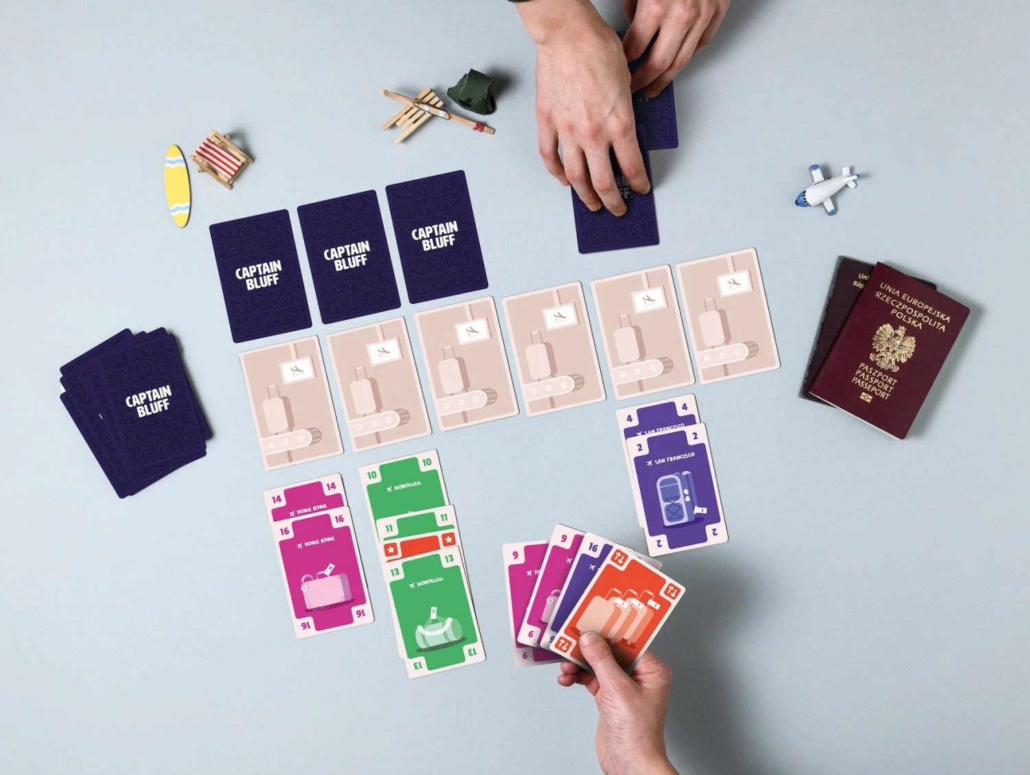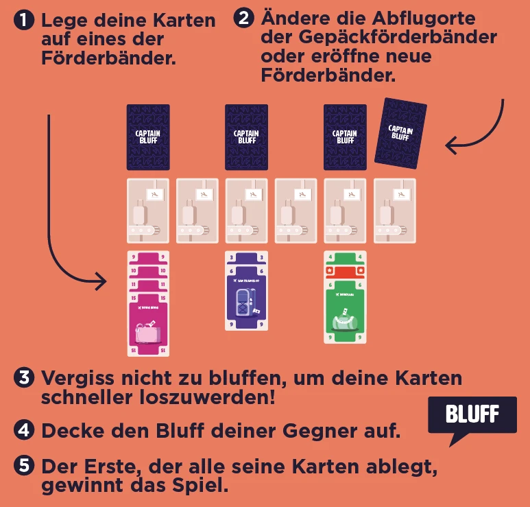 In diesem aufregenden Bluff-Spiel kann sich jederzeit alles ändern. Setze dein bestes Pokerface auf, bleib aufmerksam und merk dir die Abflugsorte, um zu gewinnen!