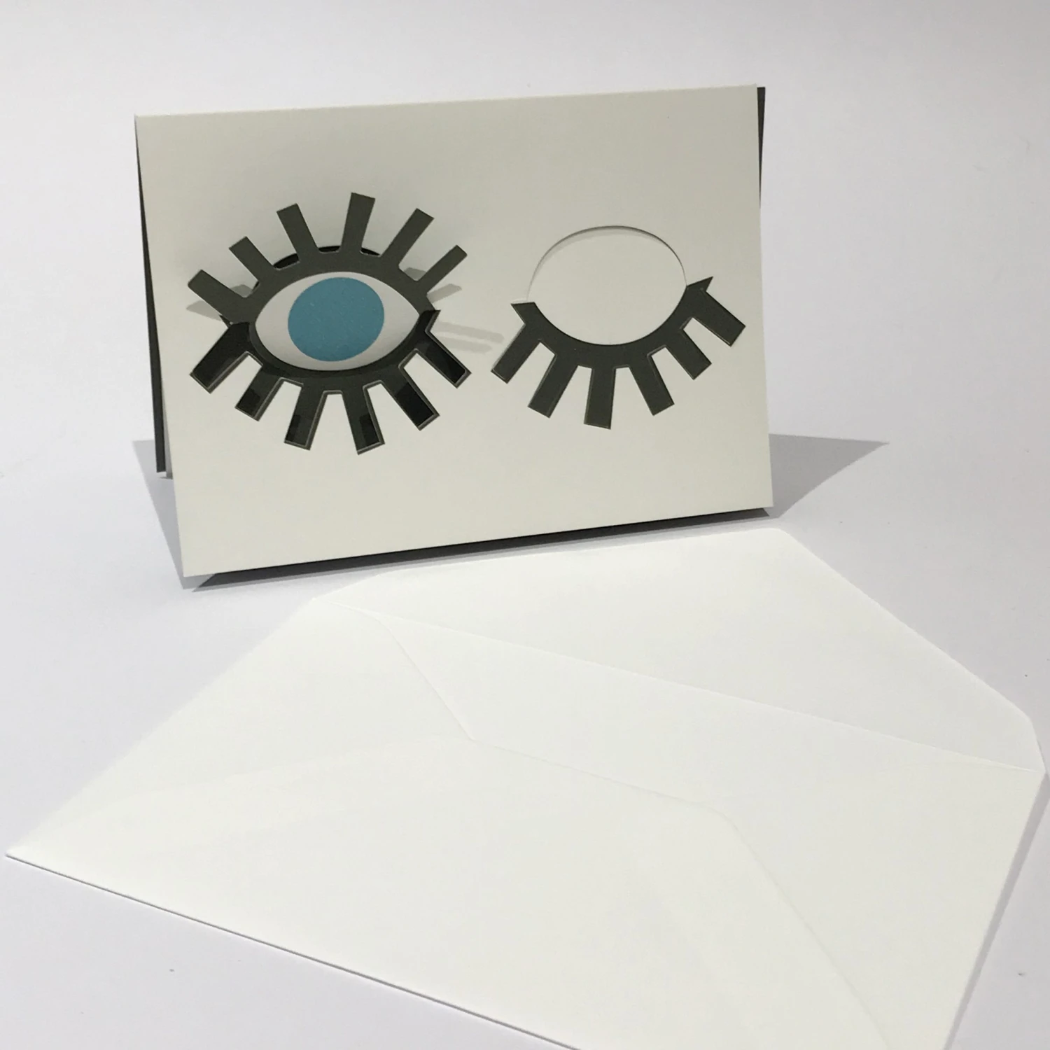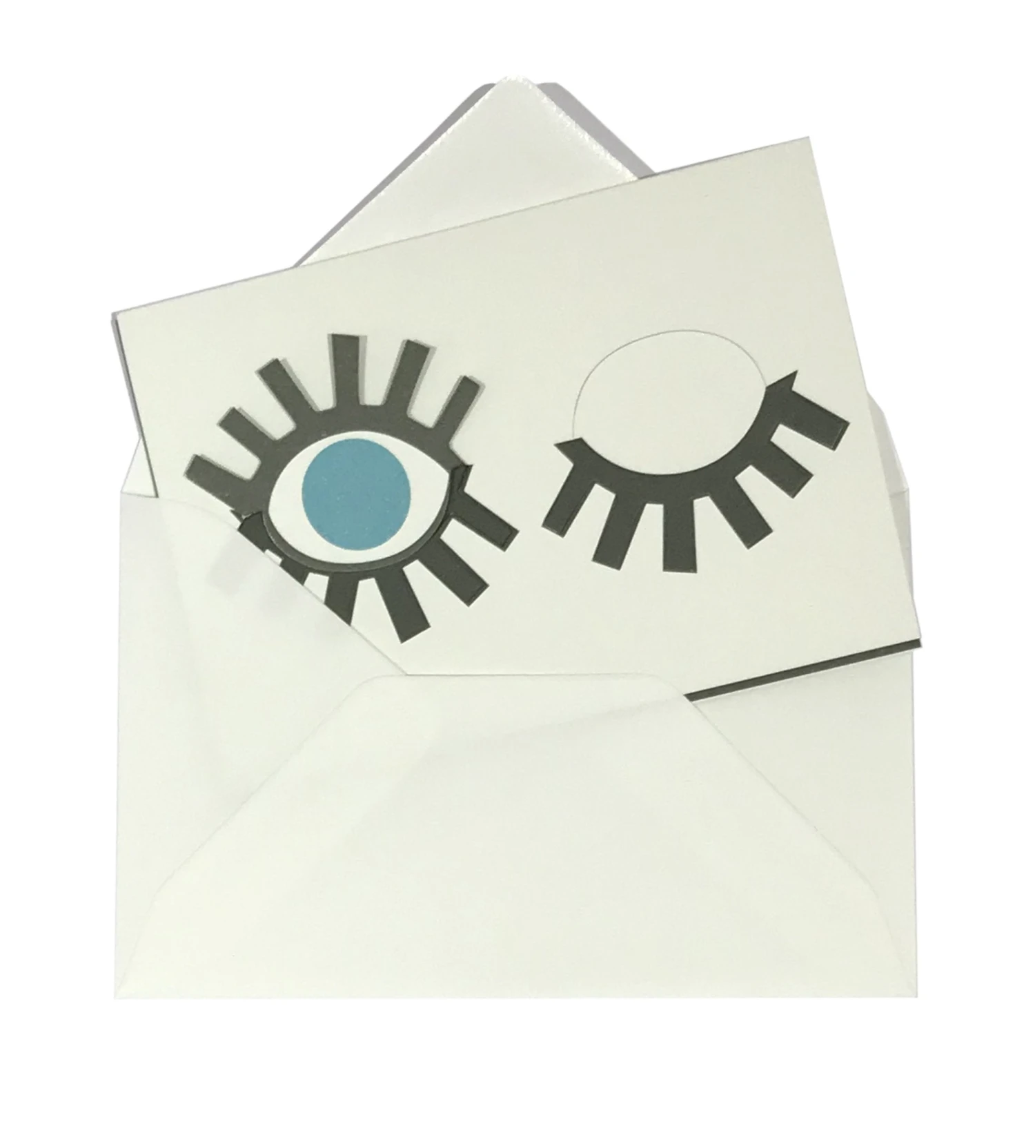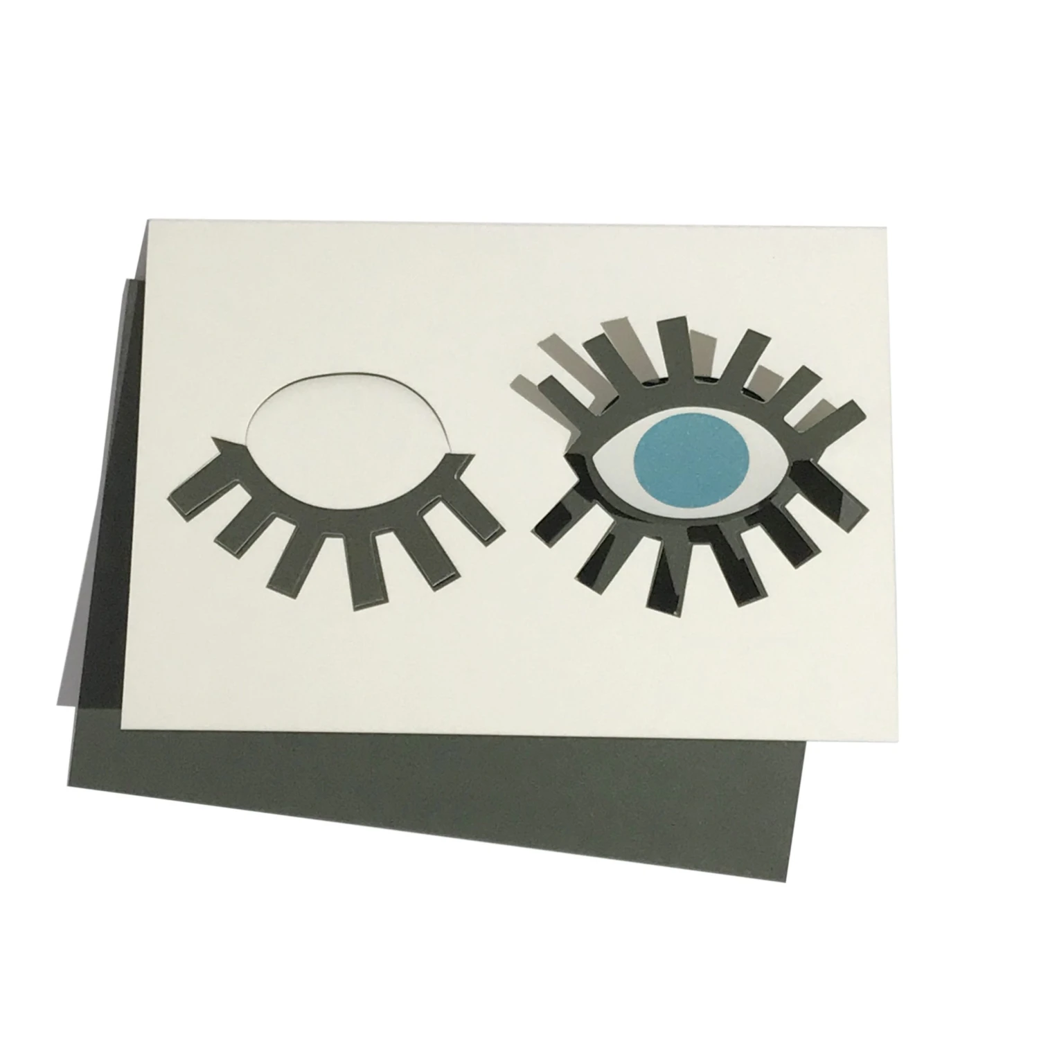 Diese Grußkarte kommt mit einem unwiderstehlichem Augenzwinkern an! Dahinter verbergen sich strahlend blaue Augen.