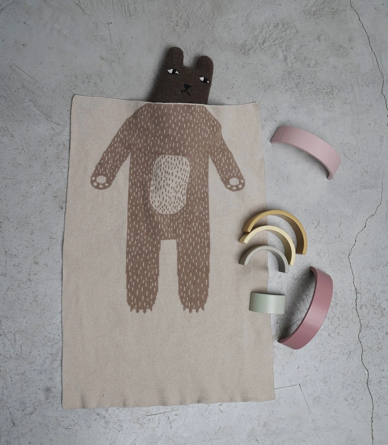 Kuschelig weiche Babydecke mit Grizzli- Bären- körper. Ein Design der der englischen Designerin Donna Wilson.