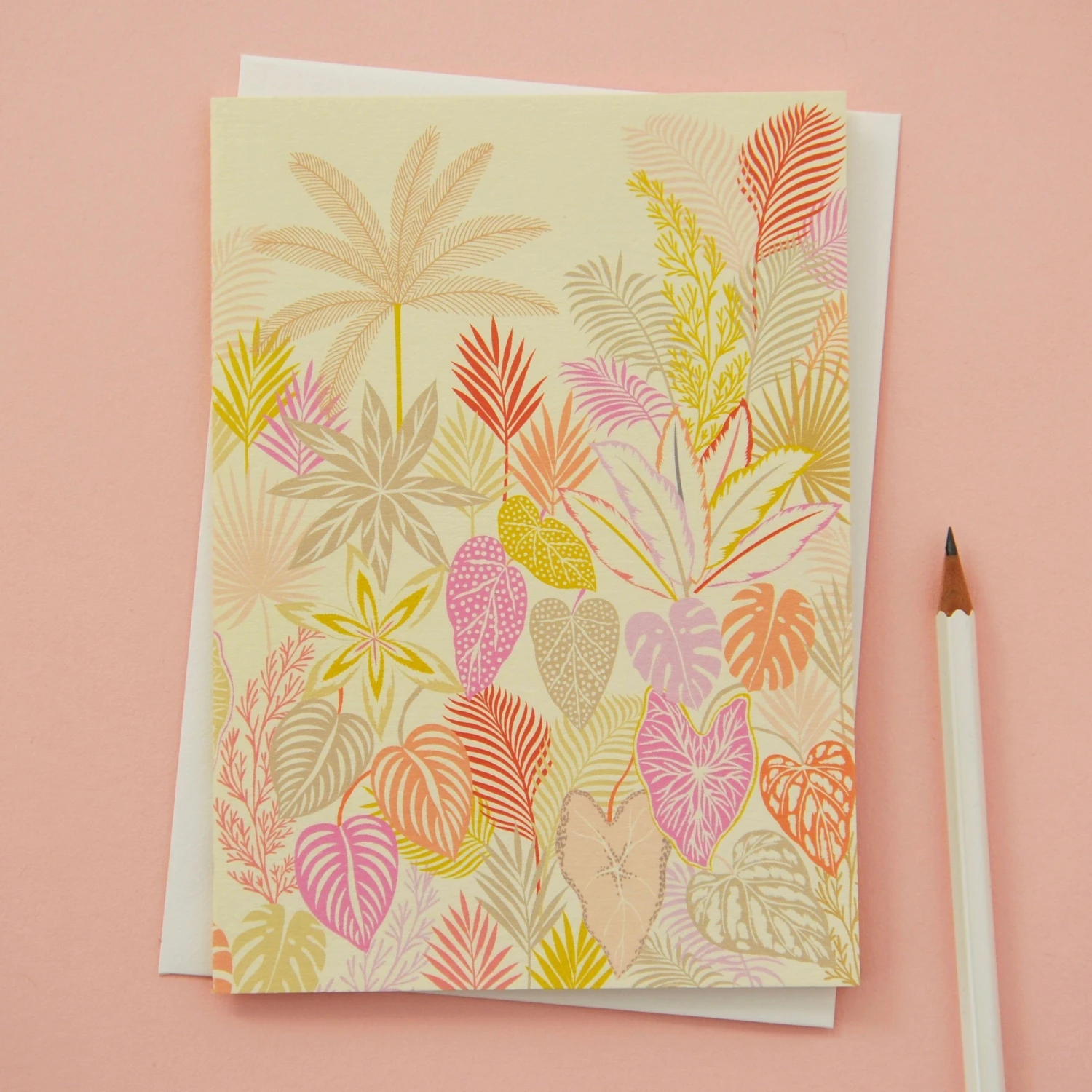 Eine große florale Grußkarte der Londoner Designerin Elvira van Vredenburgh. Die Karte zeigt verschiedene florale Motive in lebendiger Komposition.