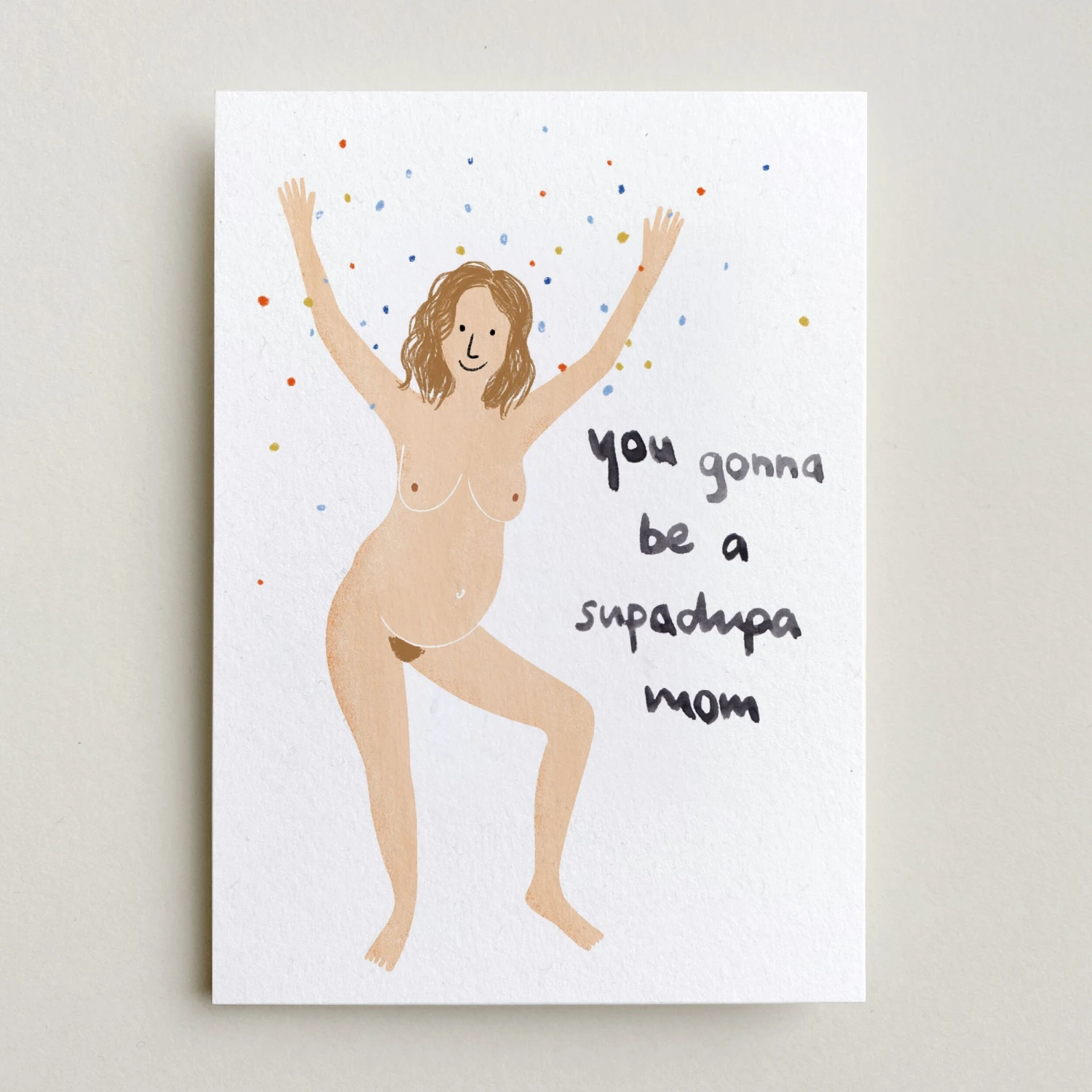 Eine Grußkarte für die werdende Mutter. „You gonna be a supadupa mom!“