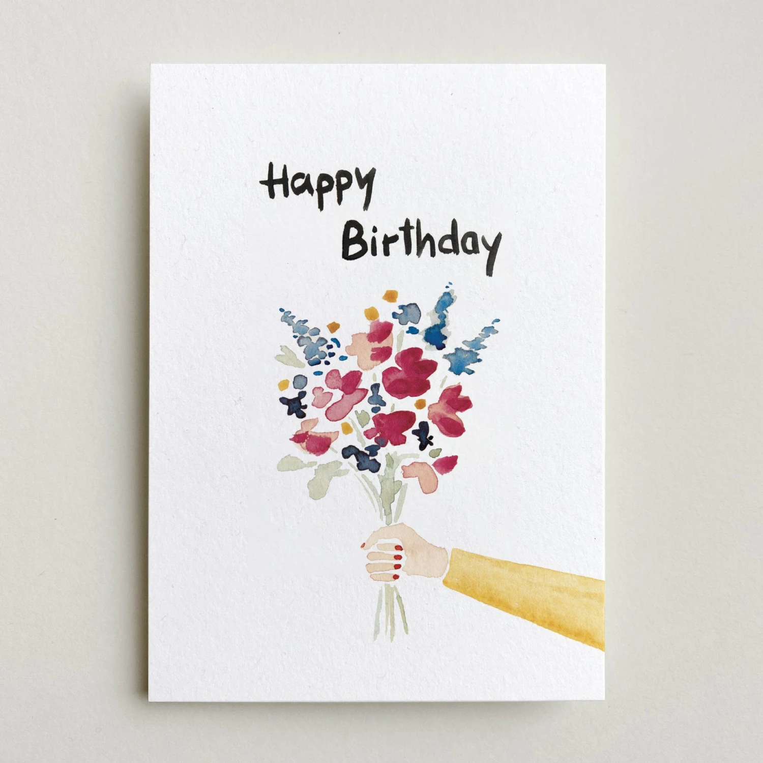 Diese Grußkarte sagt it einem Blumenstrauß „Happy Birthday“.