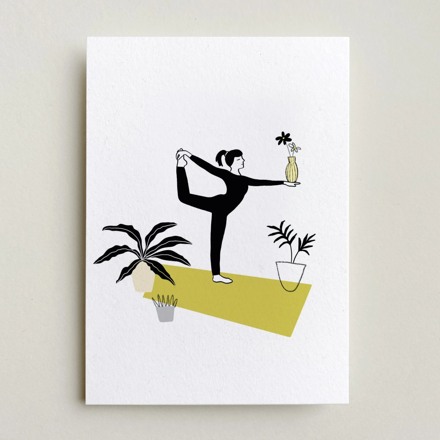 Eine Yogini mit Körperspannung zeigt diese Postkarte.
