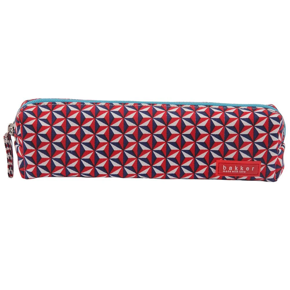 Schlampermäppchen aus steifer Baumwolle. Das besondere an diesen Stiftetäschchen ist der von Hand siebbedruckte Stoff mit fröhlich buntem Muster.