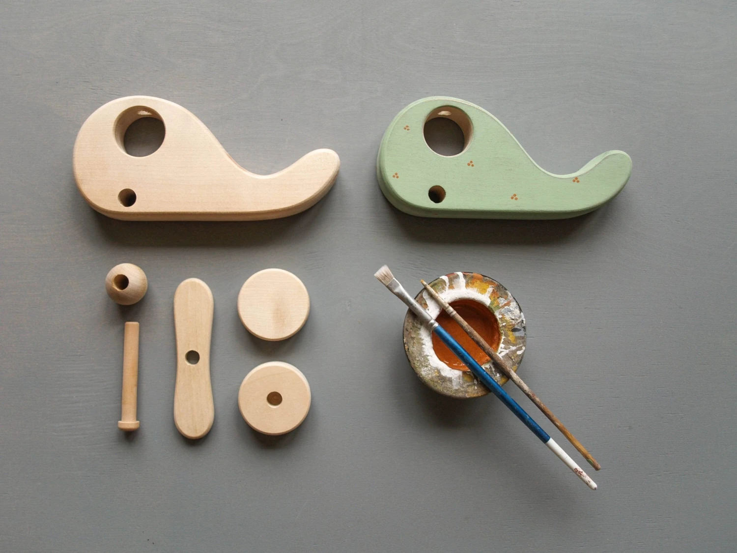 Geölt mit Leinsamenöl und bemalt mit umweltfreundlicher Milchfarbe.