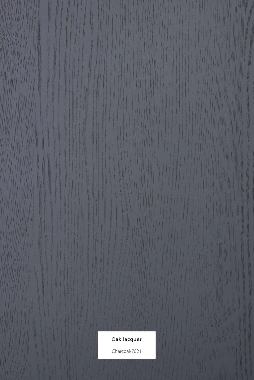 Massivholz schwarz oder sehr dunkelgrau lackiert. Die Sitzfläche ist helles Furnier.