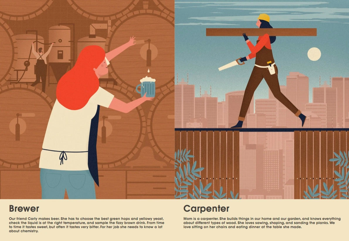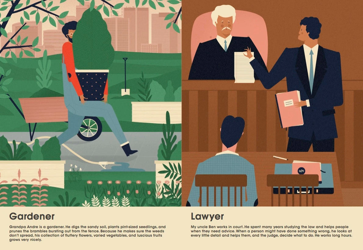 What Do Grown-Ups Do All Day? depicts punk rock drummers, journalists, male nurses, bistro chefs, designers, and more. What Do Grown-Ups Do All Day? illustrates that anything is possible for girls and boys.