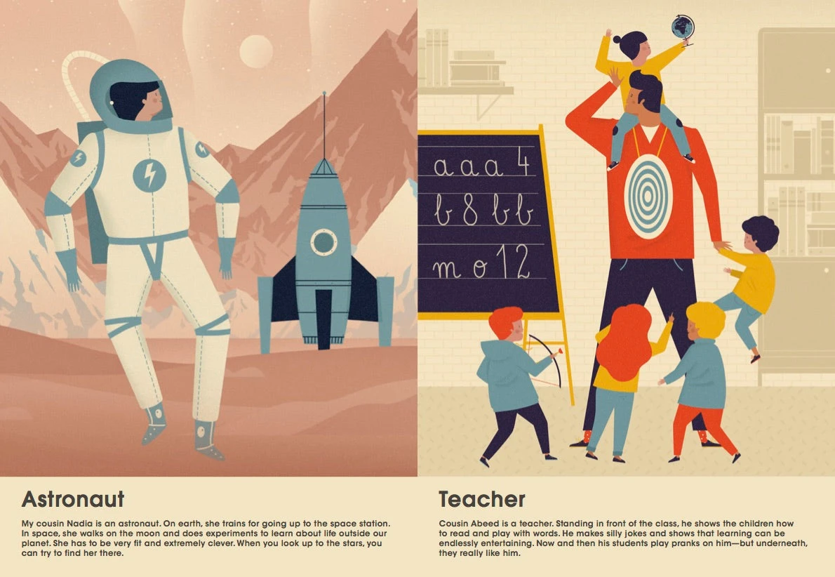 Looking at the adults around them, children curiously ponder possible professions. Father, mother, uncle, big sister: every family member serves as career inspiration. This is the new collaboration with Dawid Ryksi What Do Grown-Ups Do All Day? provides children with creative fuel for professional daydreams and various career paths in Ryski’s iconic vintage style and easy to read aloud descriptions.