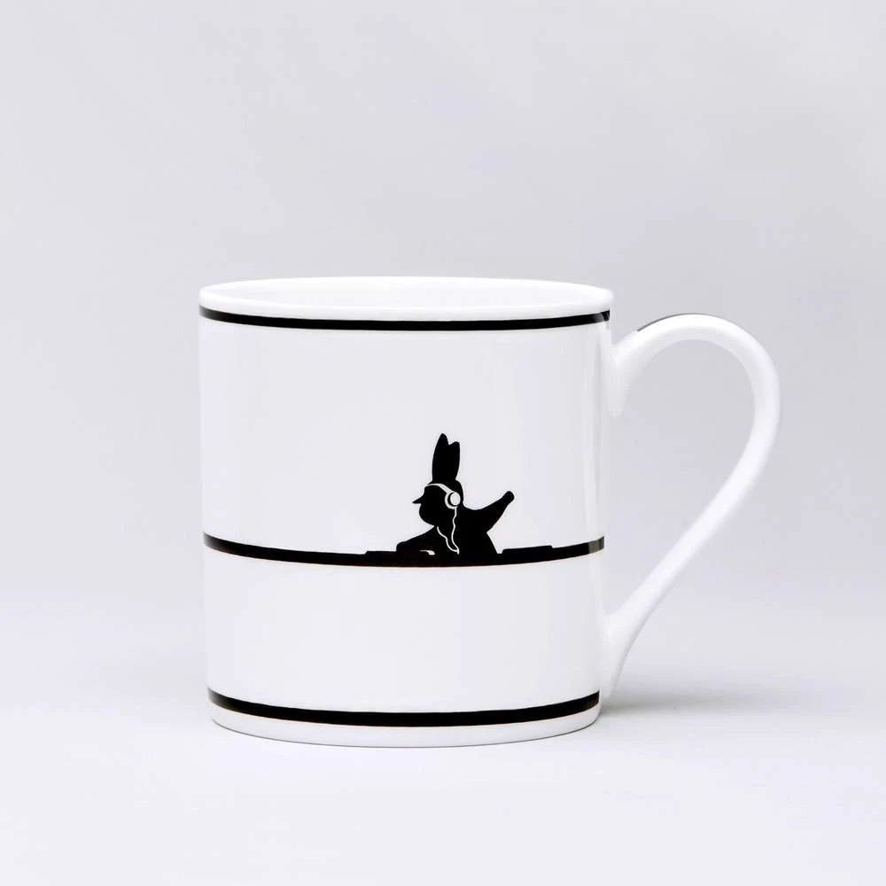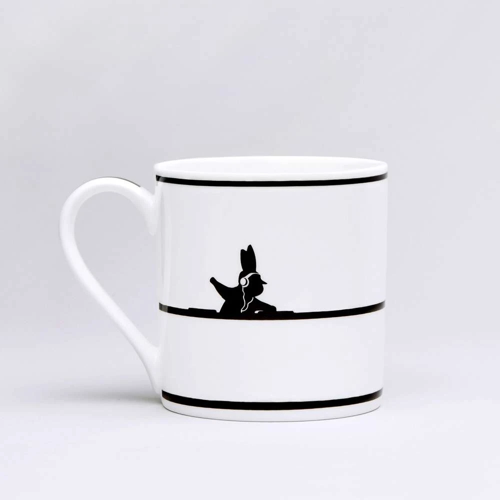 Auf dieser Tasse legt DJ Rabbit Musik auf.