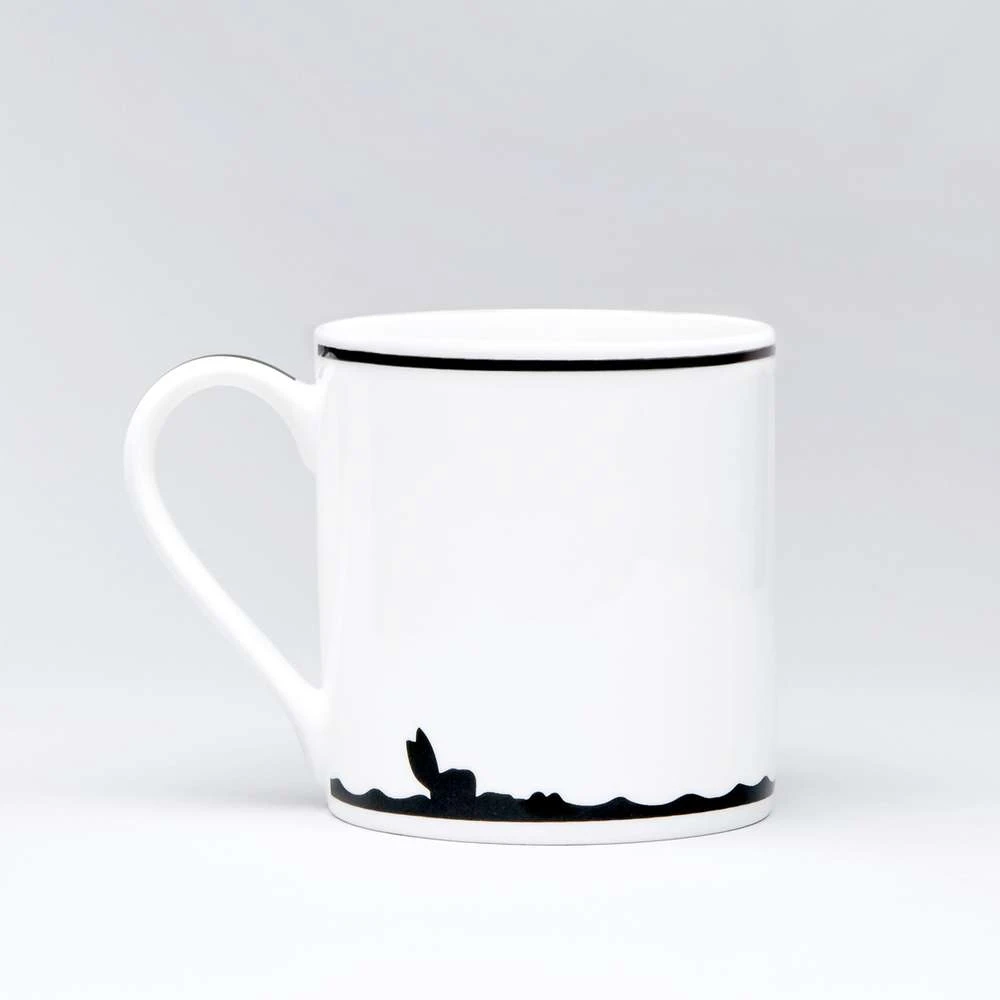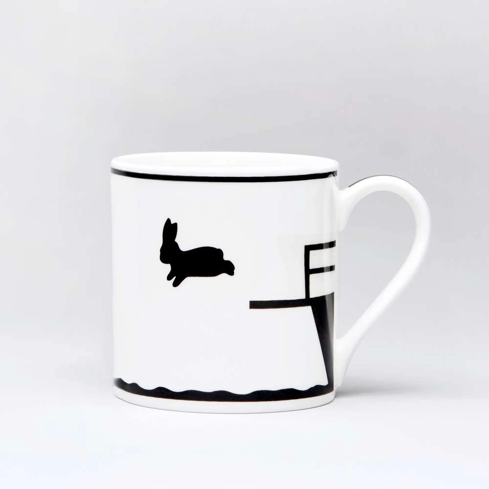 Auf dieser Tasse springt das Häschen vom Sprungturm ins kühle Nass und taucht dann wieder auf.