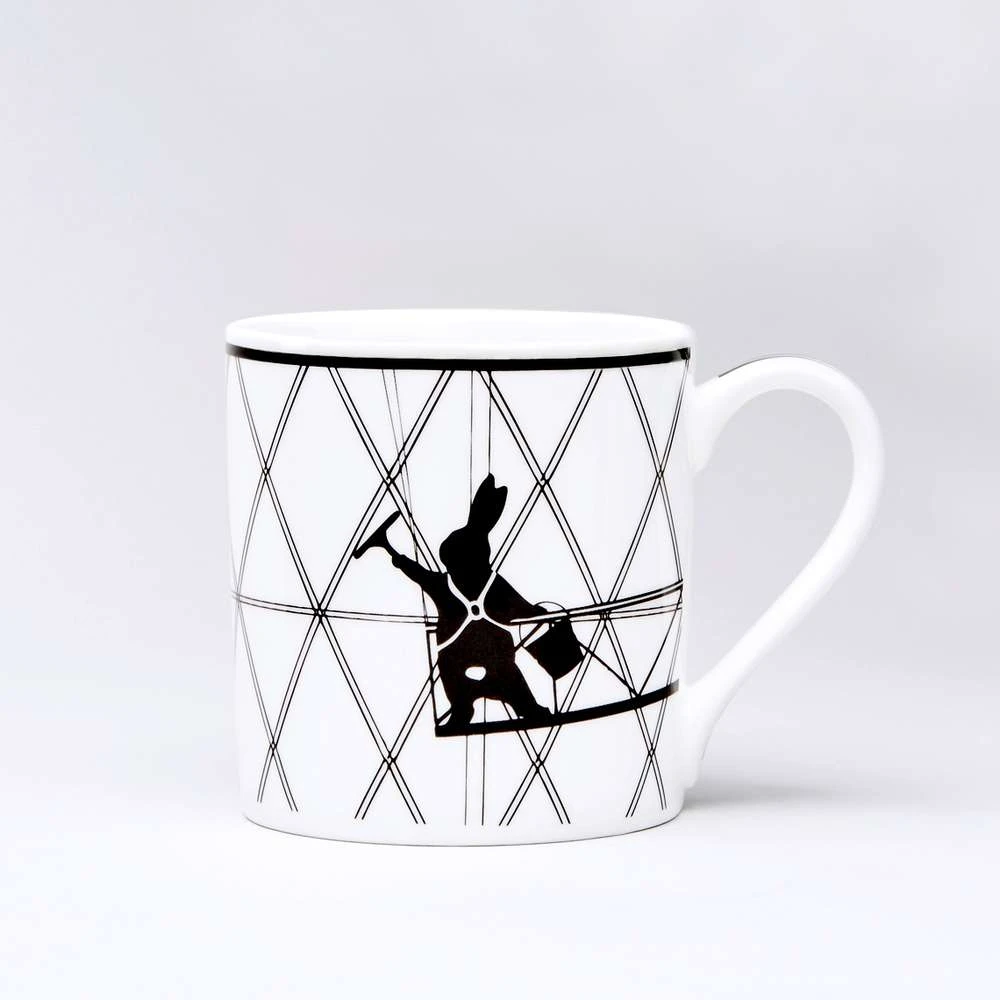 Auf dieser Tasse putzt der kleine Hase Fenster.
