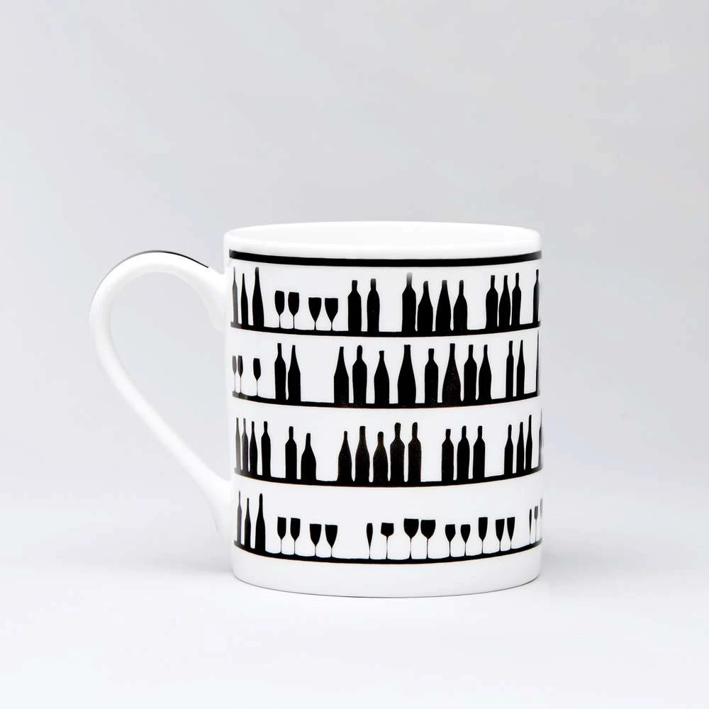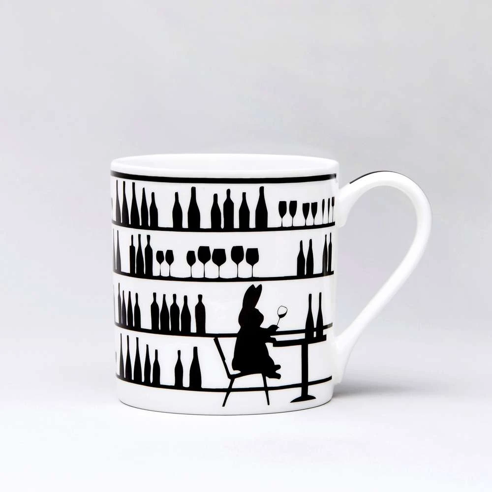 Auf dieser Tasse macht der Hase eine Weinprobe.