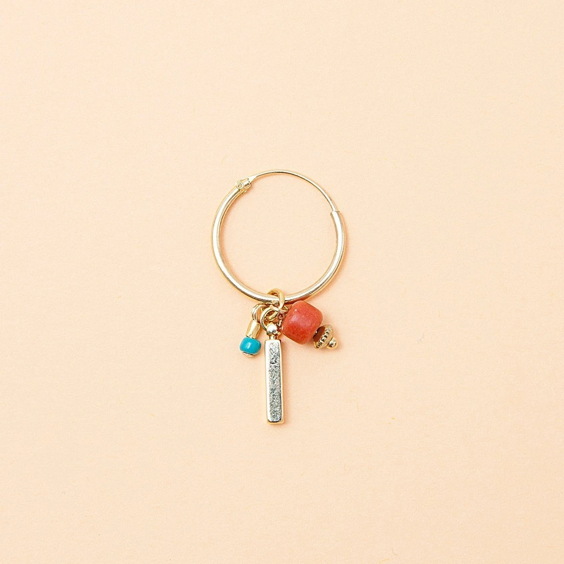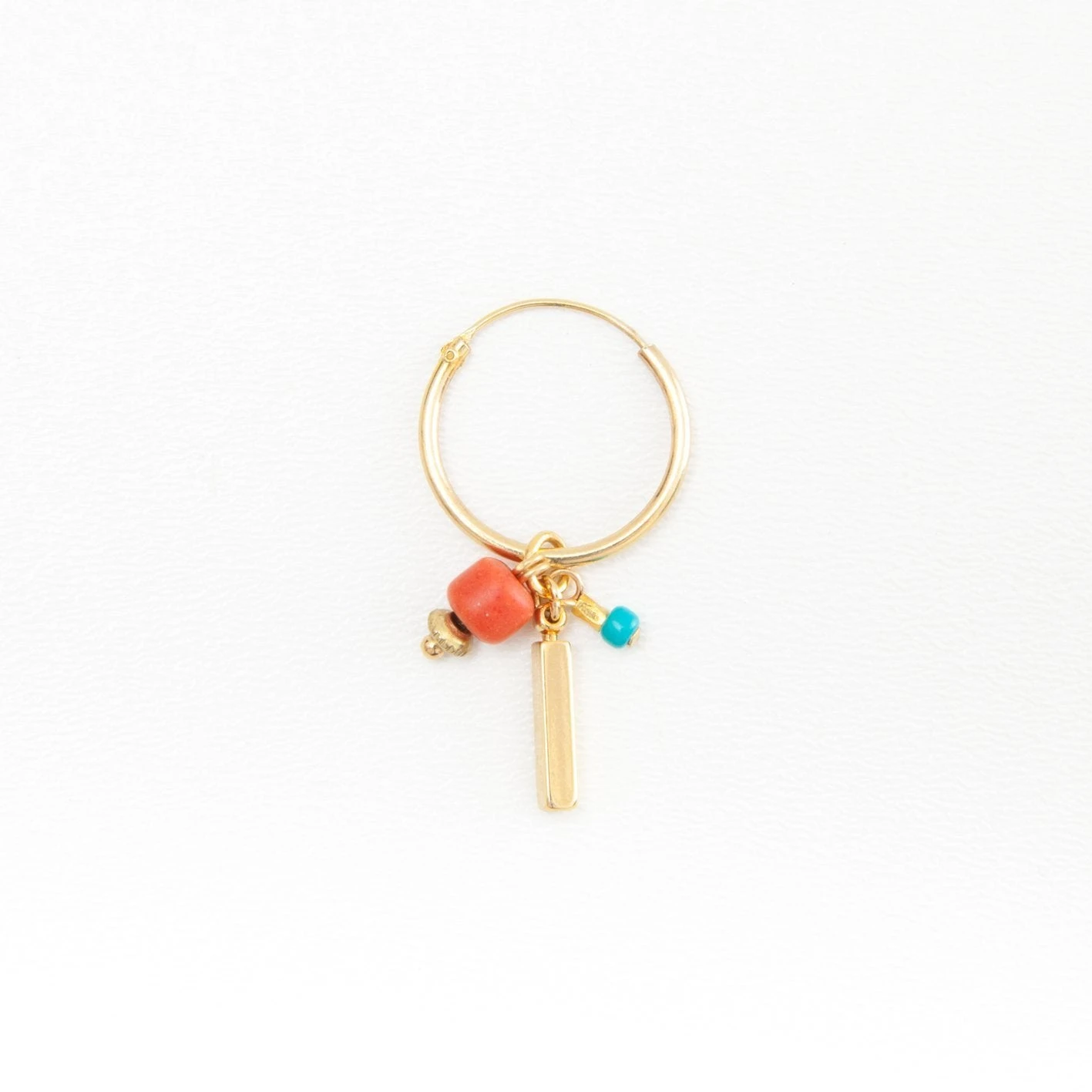 Mini – Creolen Ohrringe mit hochwertiger 24 Karat Vergoldung und einem bunten Anhänger mit einer kleinen Koralle.