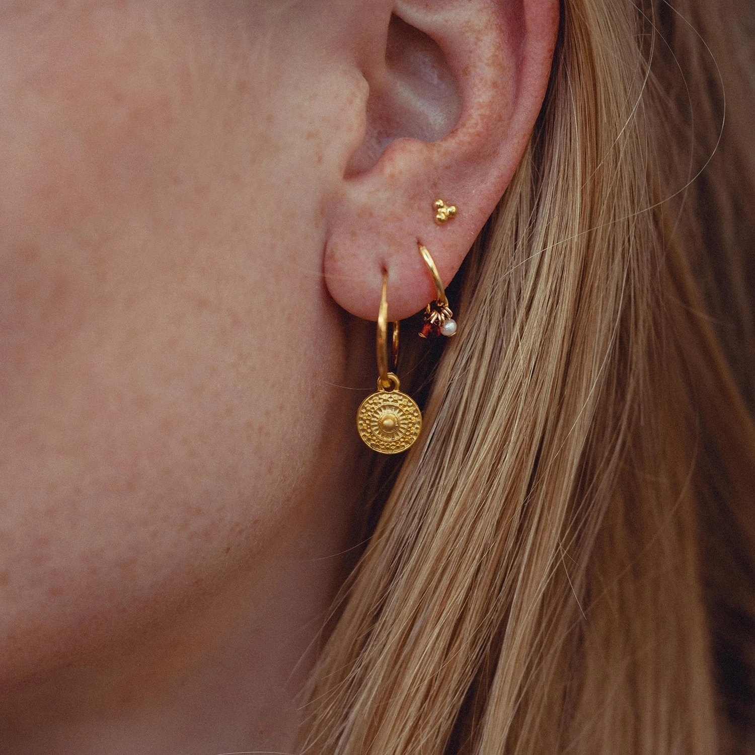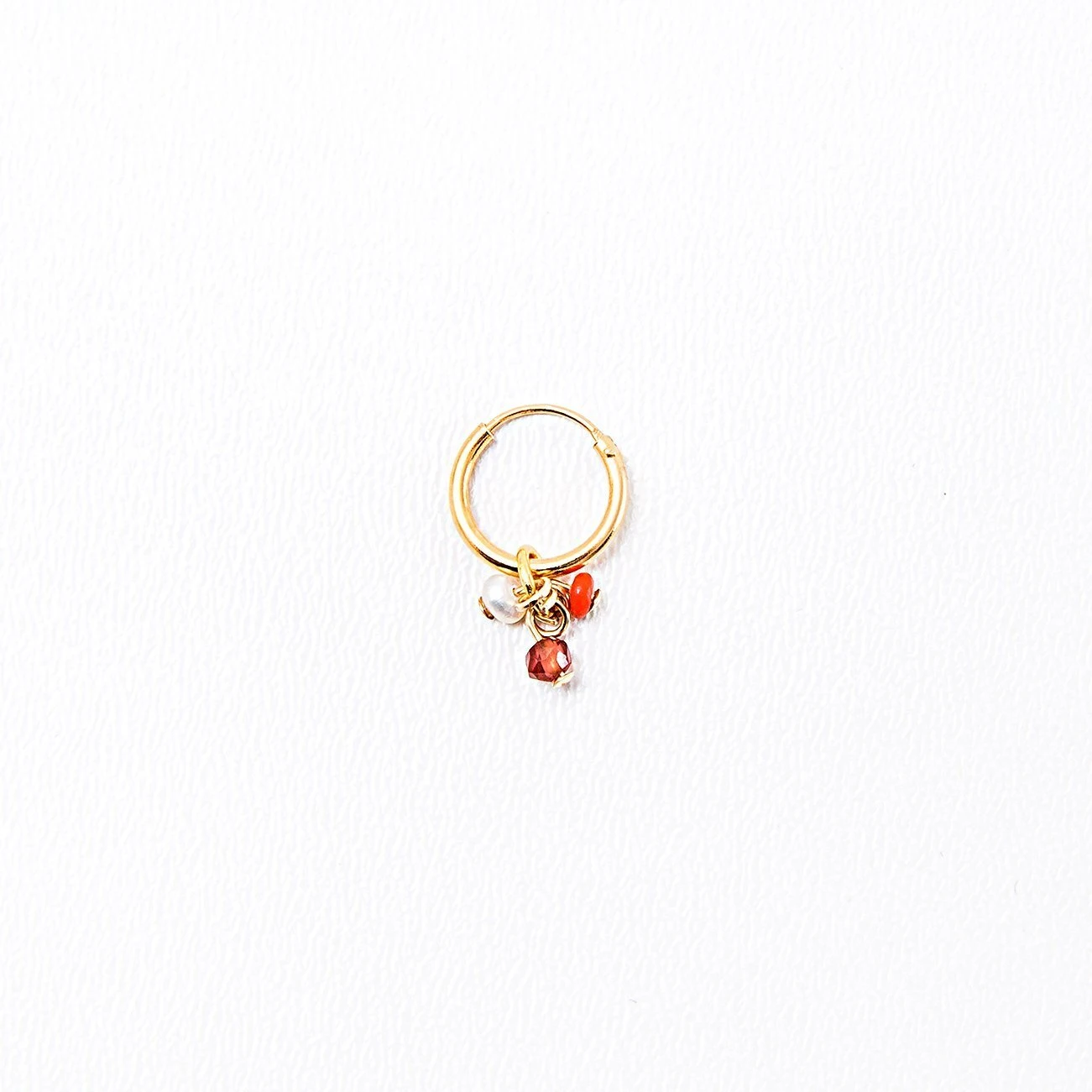 Handgemachter mit 18k vergoldeter kleiner Ohrring mit einem Anhänger mit Perle Granat und Koralle.