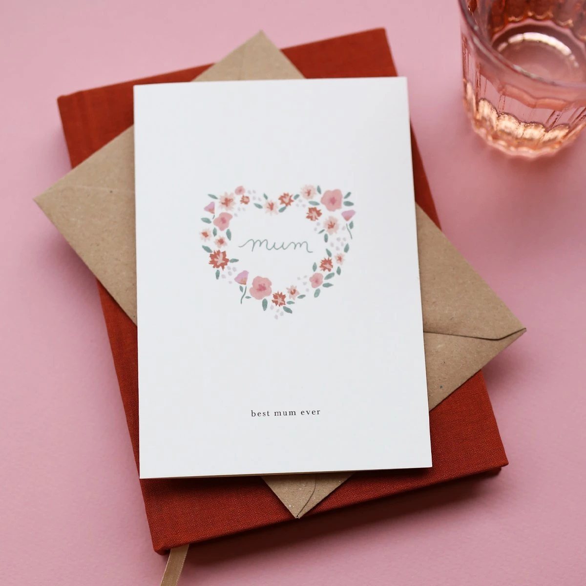 Gefaltete Grußkarte mit Briefumschlag aus Kraftpapier.