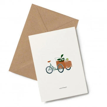 Gefaltete Grußkarte mit Briefumschlag aus Kraftpapier.