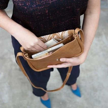 Die Humming Along Tasche ist die etwas größere der kleinen Ledertaschen. Hier in einem schönen Cognac Ton im used look. Wer eine große Geldbörse sein Eigen nennt, mehr als den Lippenstift und Handy mit sich führt, ist mit dieser immer noch kleinen Handtasche mit den Maßen 27 x 16 x 7cm wahrscheinlich zufrieden.