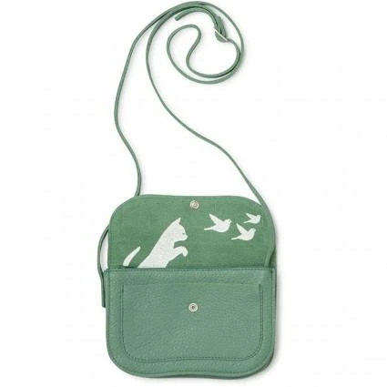 Auf der Innenseite ist eine Katze und ein Vogel per Siebdruck angebracht