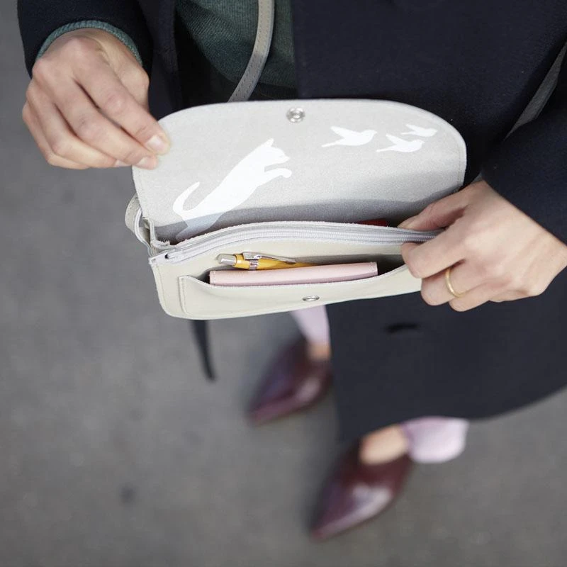 Die kleine Handtasche Cat Chase von Keecie gibt es jetzt auch in zartem lila. Sie wertet jedes Outfit auf ganz ohne nach Aufmerksamkeit zu schreien.