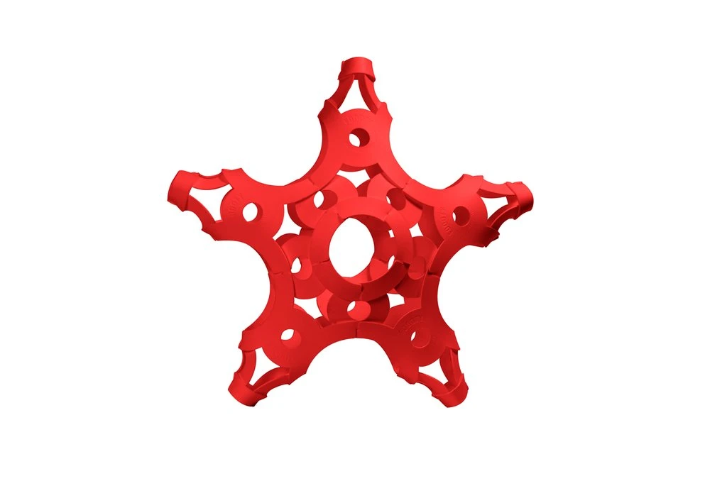 Die einzelnen Plastikelemente kommen in einem flachen Stapel. Beim Aufbau nach Anleitung machst Du daraus schnell einen runden Ball zum Kicken, Werfen und Fangen. Und wenn Du lieber mal mit Rugby Ei spielen möchtest, wird auch das daraus. Oder eine Rakete als Dekoration im Kinderzimmer. Oder drei Jonglier- „Bälle“.