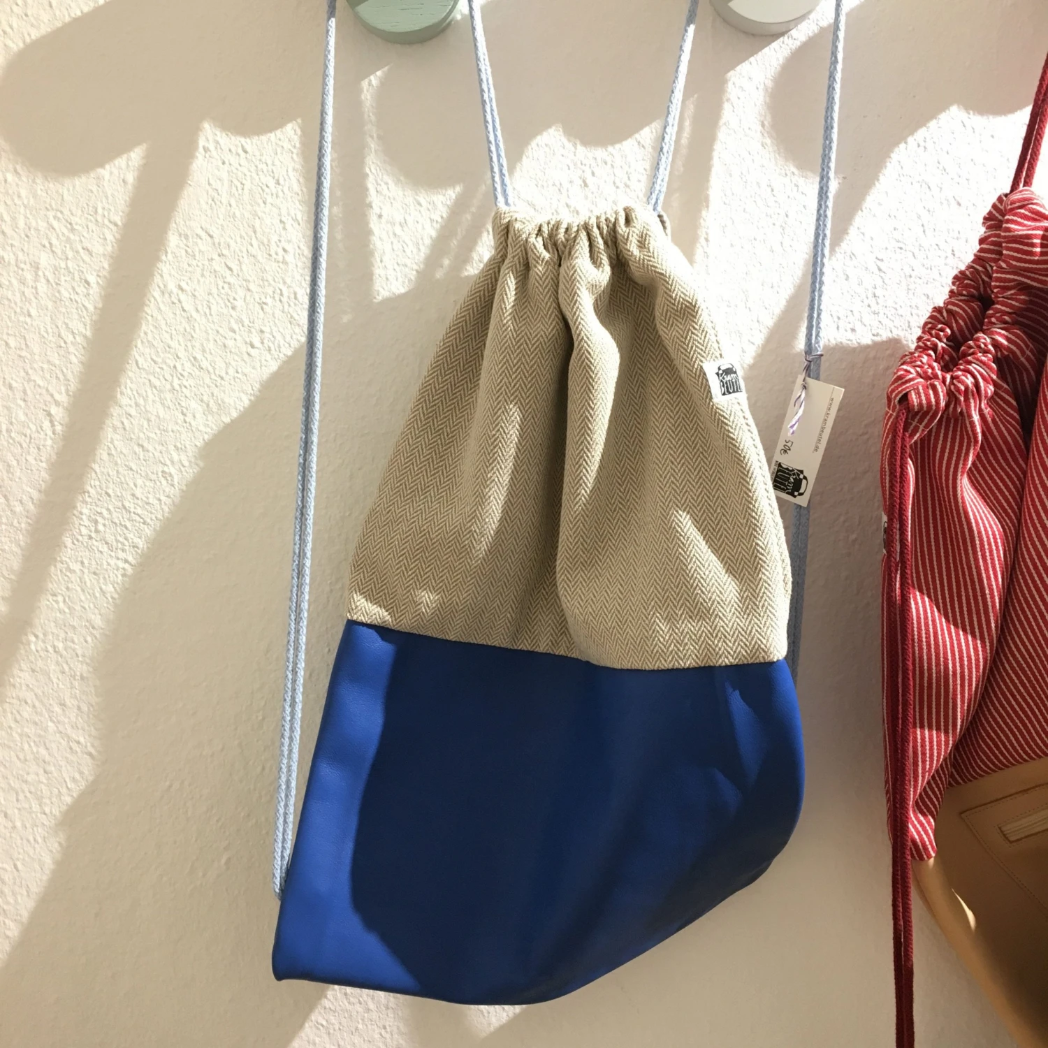Der Rucksack kann als Turnbeutel oder Handtasche verwendet werden.
