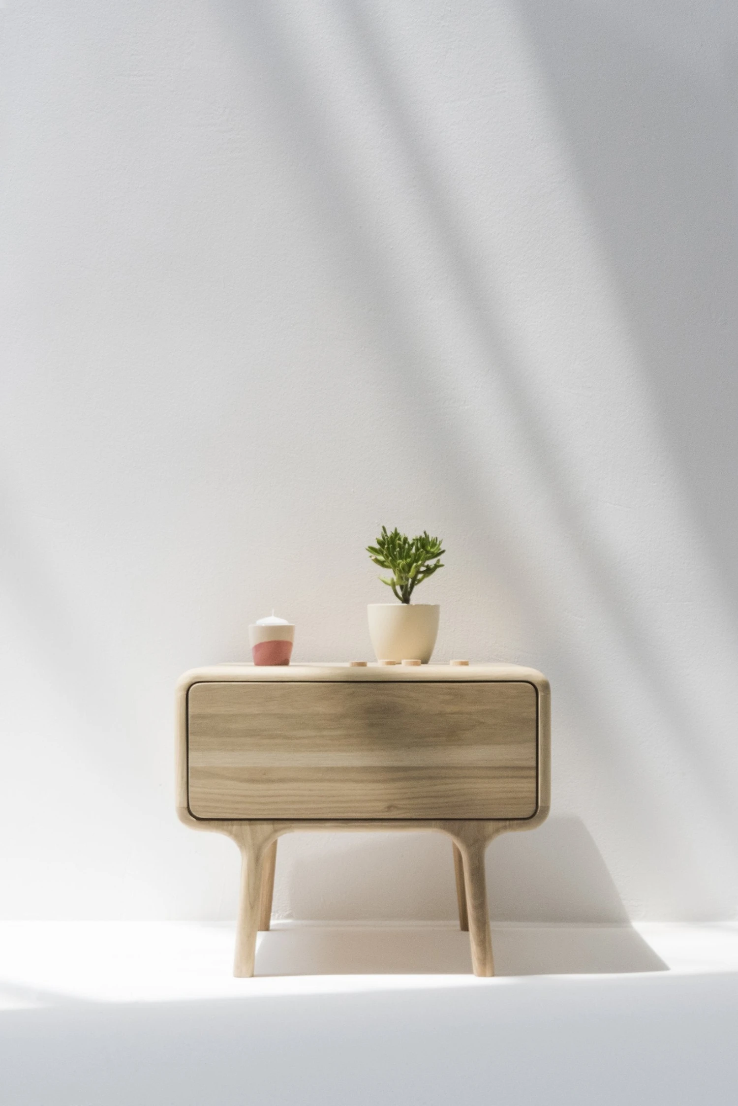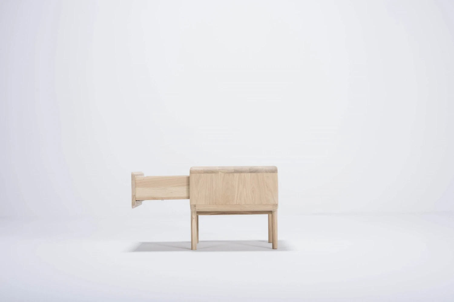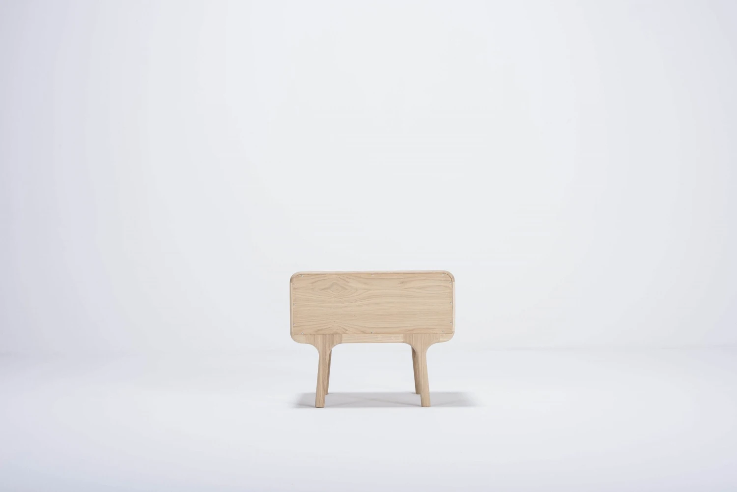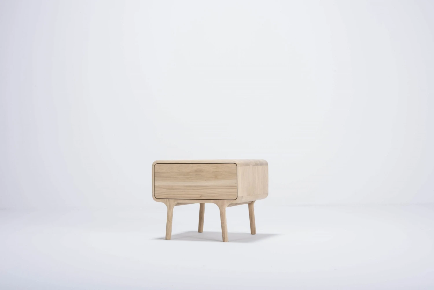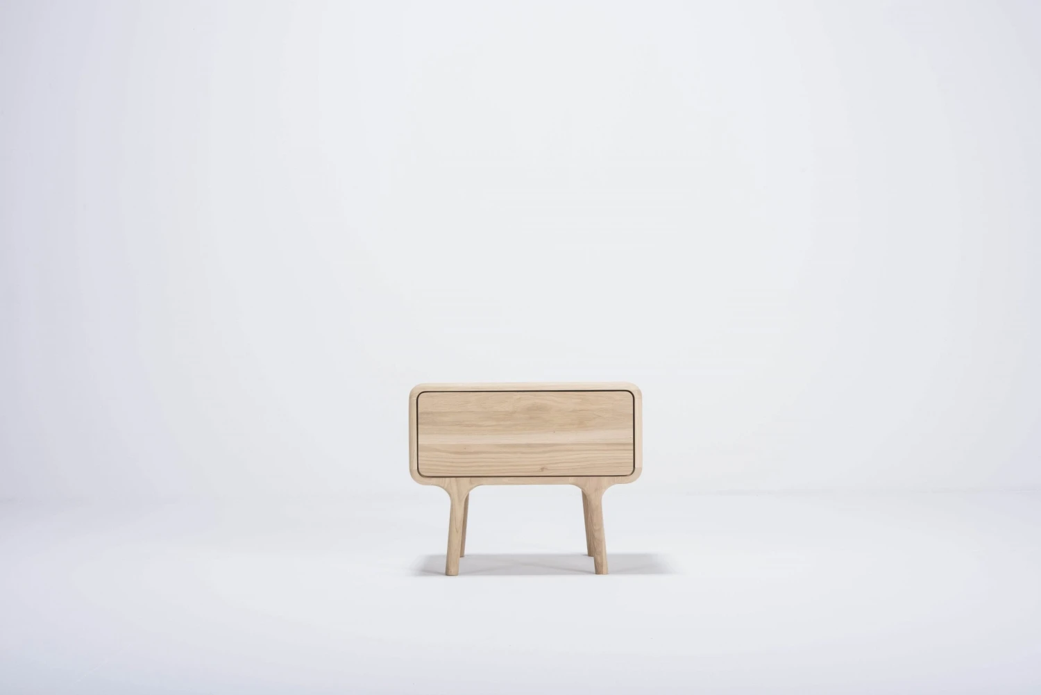 Passend zum leichtfüßigen Bett FAWN von Gazzda gibt es auch schöne Nachtkästchen. Massives Eichenholz und ein Design, das durch seine Schlichtheit besticht. Abgerundete Ecken, die ein Augenschmaus sind und auch haptisch Freude machen. Und die Schublade erfreut durch hervorragende Qualität.