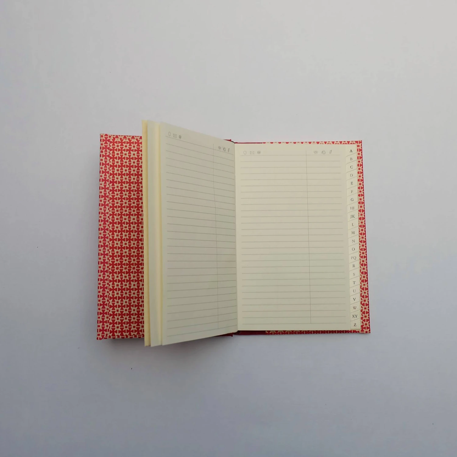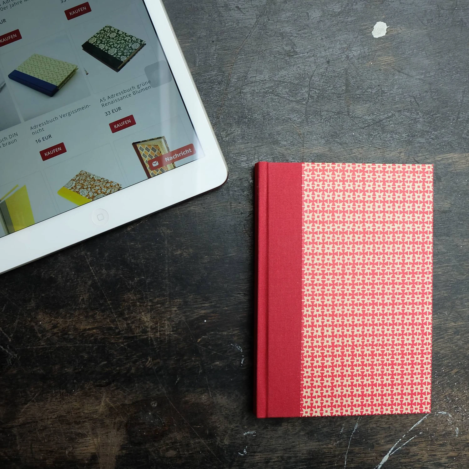 Unser Adressbuch hat einen Einband aus feinem aber festem italienischen Buntpapier, der Buchrücken ist aus Buchleinen.