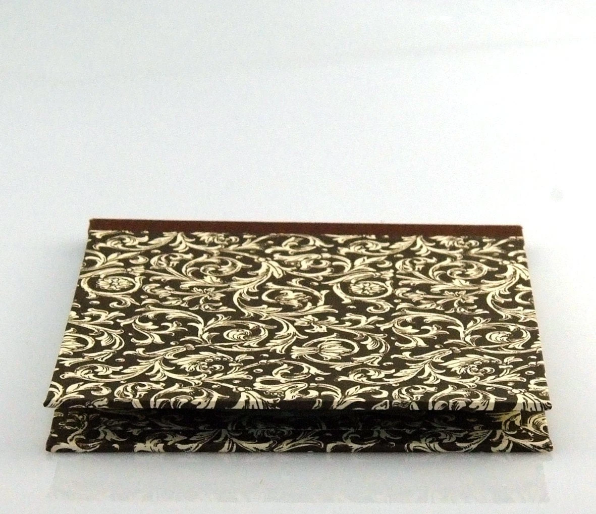 Aus hochwertigem Buchbindekarton und wunderschönem italienischem Papier von Hand gebunden. Der „Buchrücken“ ist aus Buchbindeleinen.