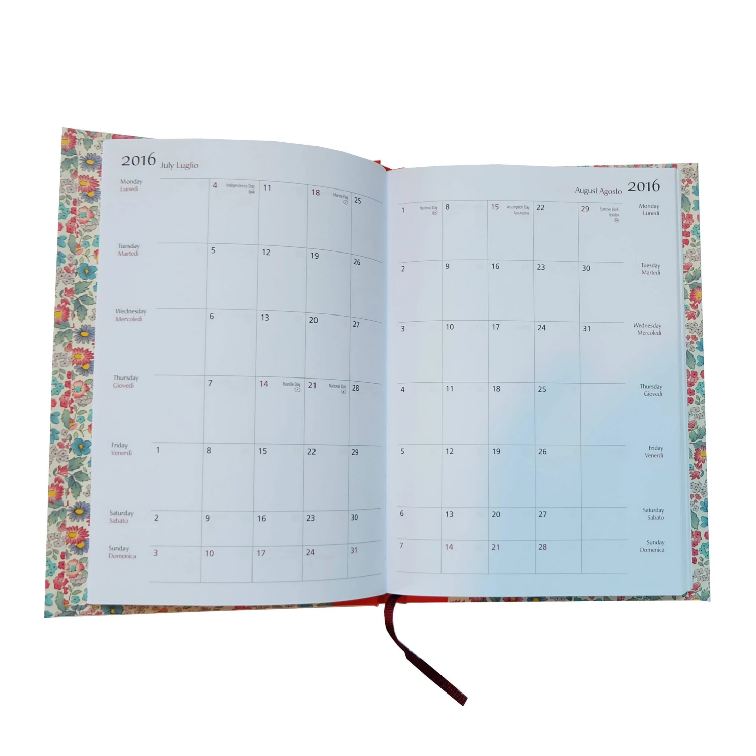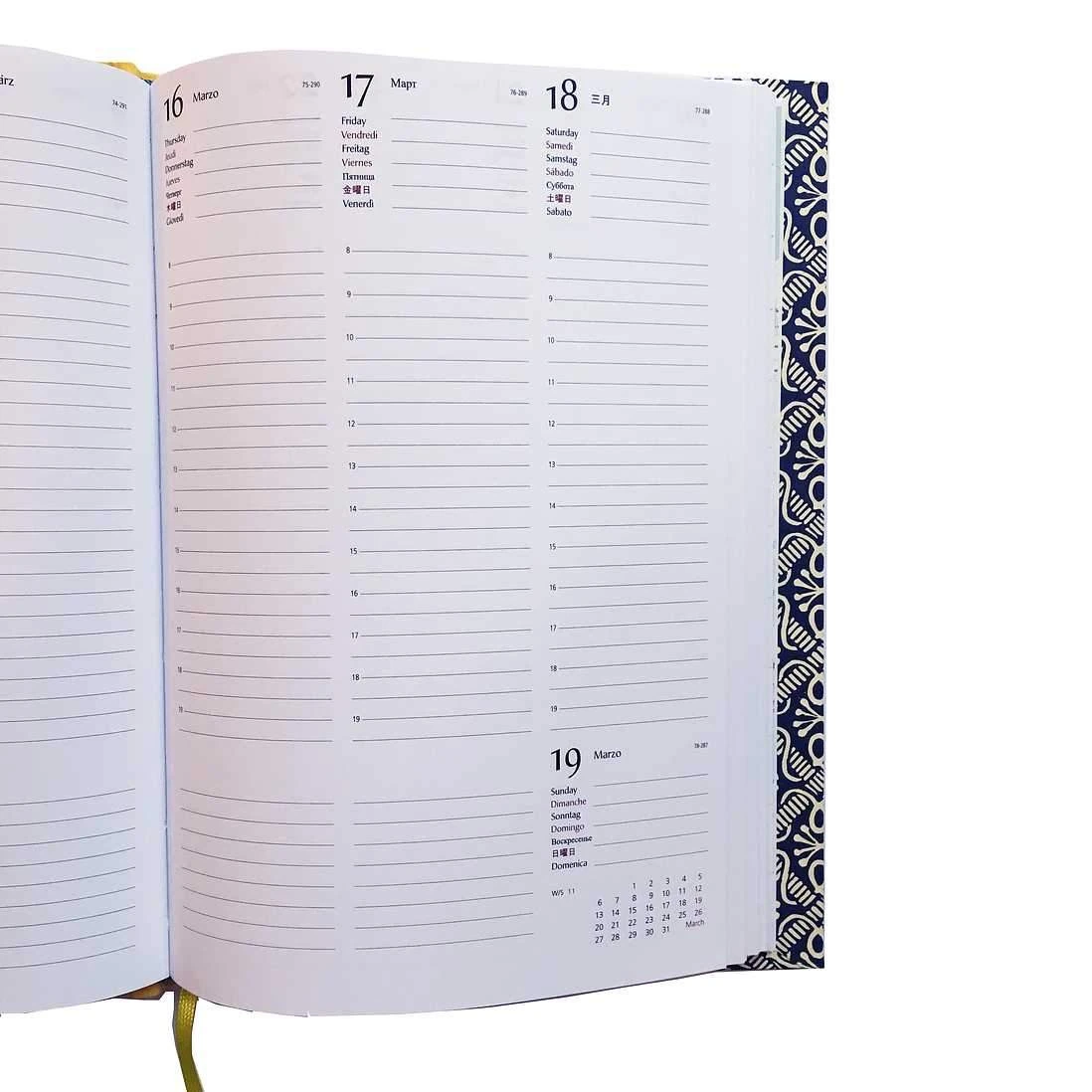Der Welt-Kalender hat eine Größe von ca. 148 x 210mm (DIN A5) und verfügt neben Adress – Registratur über eine große Jahresübersicht und Monatsübersicht.