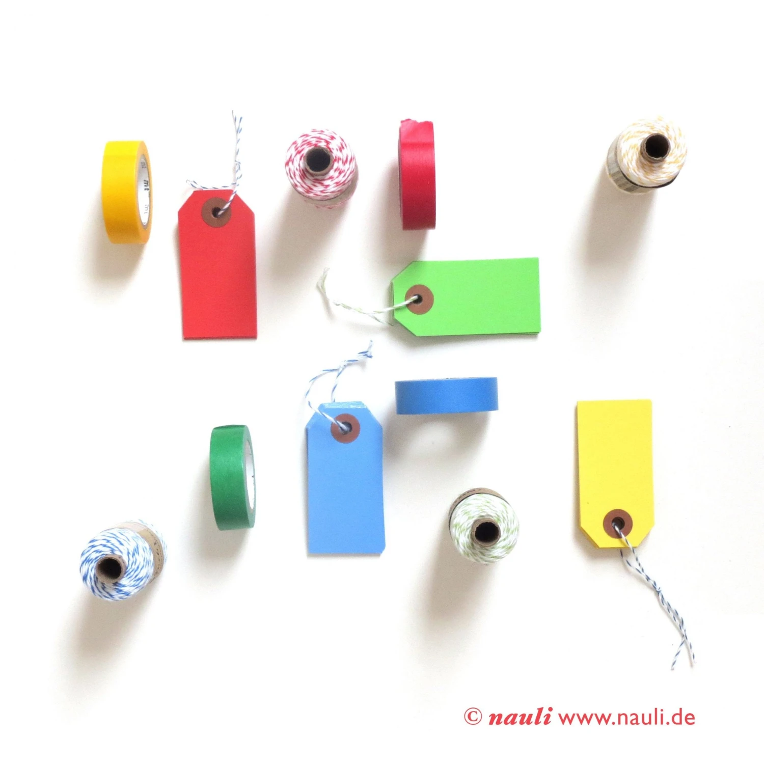 Auf dem Foto ist Washi Masking Tape und Bakers Twine in den passenden Farben zu sehen. Du bekommst es an anderer Stelle hier im Shop.