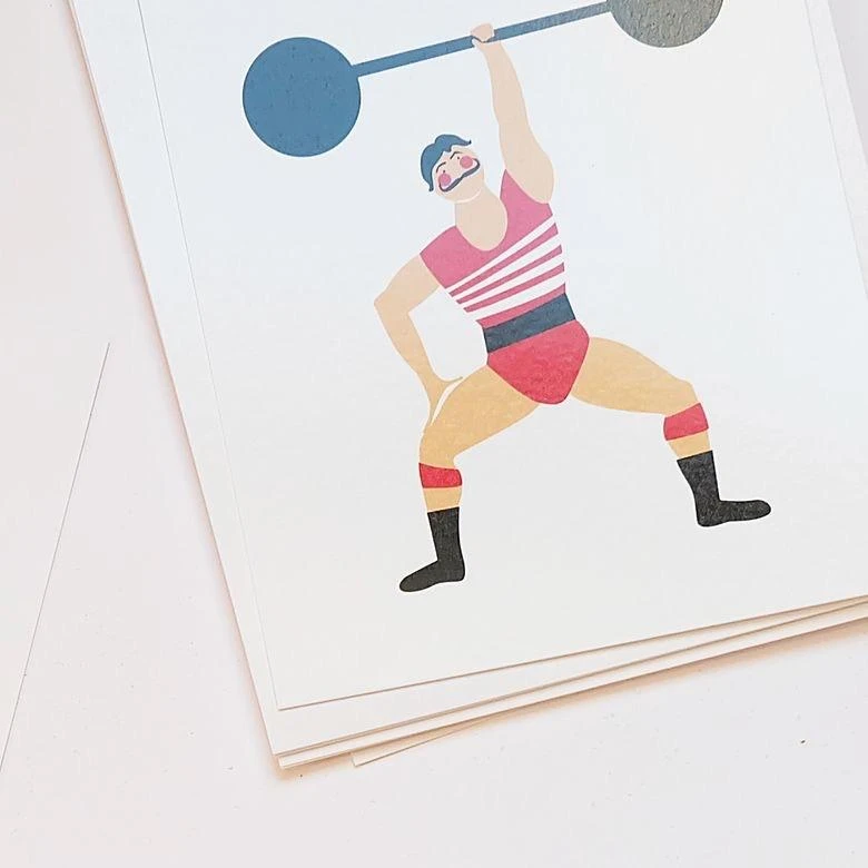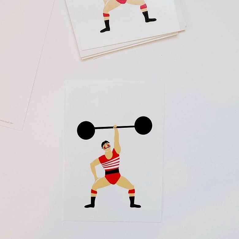 Der lustige Gewichtheber der Kabelartisten ist ein Favorit und schmückt hier als Einzelkämpfer eine Postkarte.