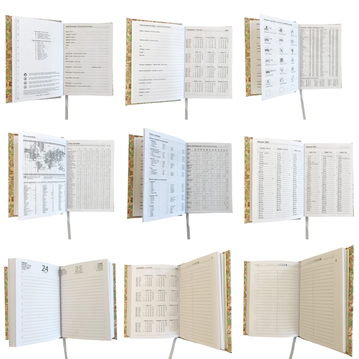 Der Tageskalender hat eine Jahres- und eine Monatsübersicht und verfügt über einen mit Alphabet versehenen Adressteil