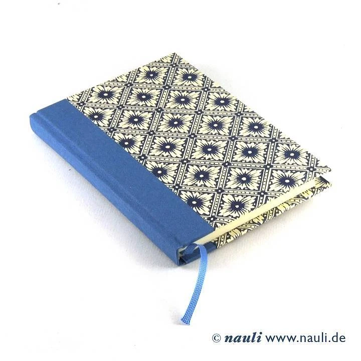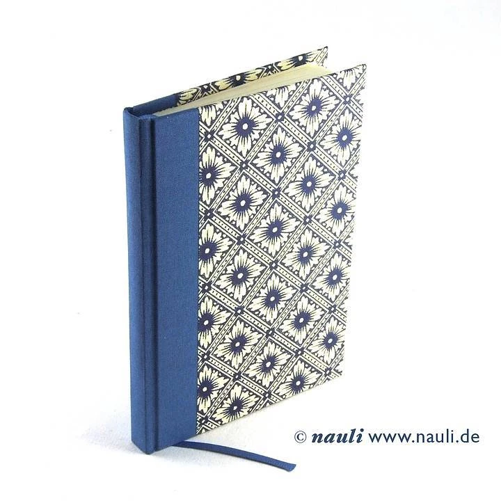 Das Buch ist fadengeheftet und wurde in unserer eigenen Werkstatt mit Liebe zum Detail gebunden. Dabei haben wir den Buchrücken aus Buchleinen gemacht. Das Dekorpapier stammt aus Italien, wo es ursprünglich zum Auskleiden von Schränken verwendet wurde. Es ist robust und trotzdem unglaublich schön. Die Druckplatten für das Muster wurden sicherlich handgeschnitzt.
