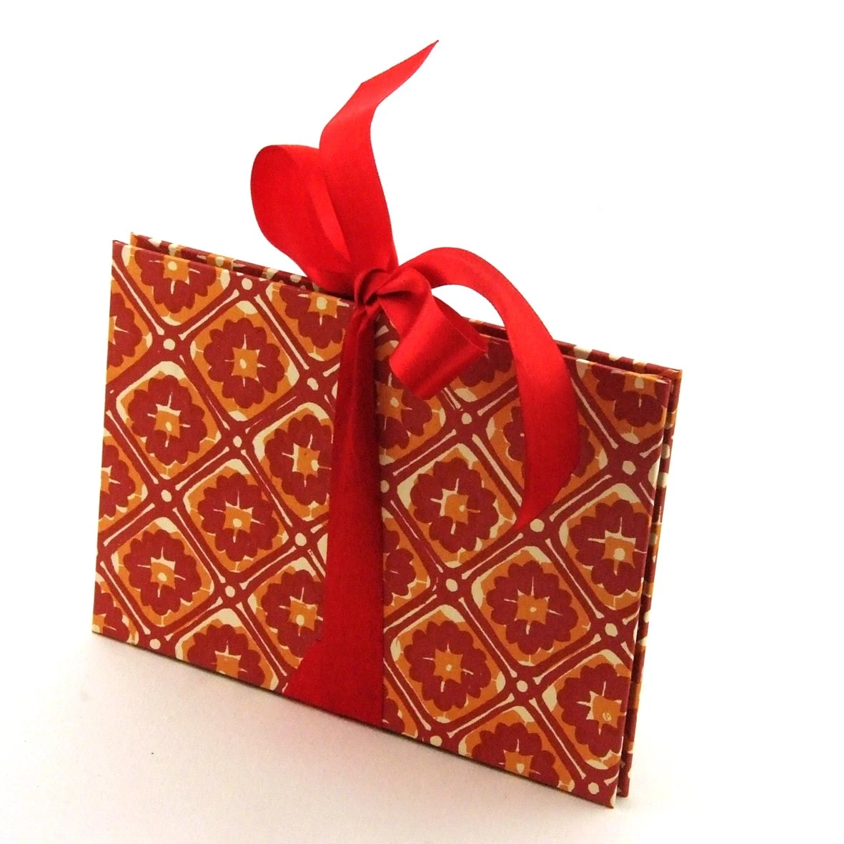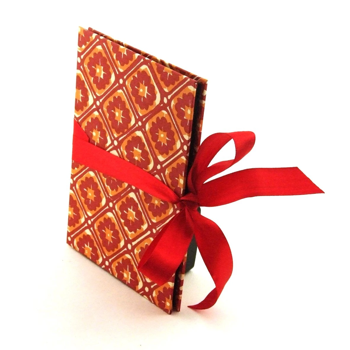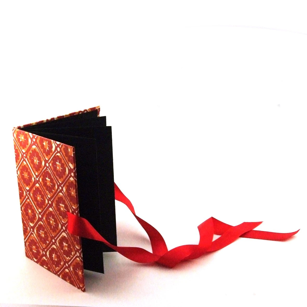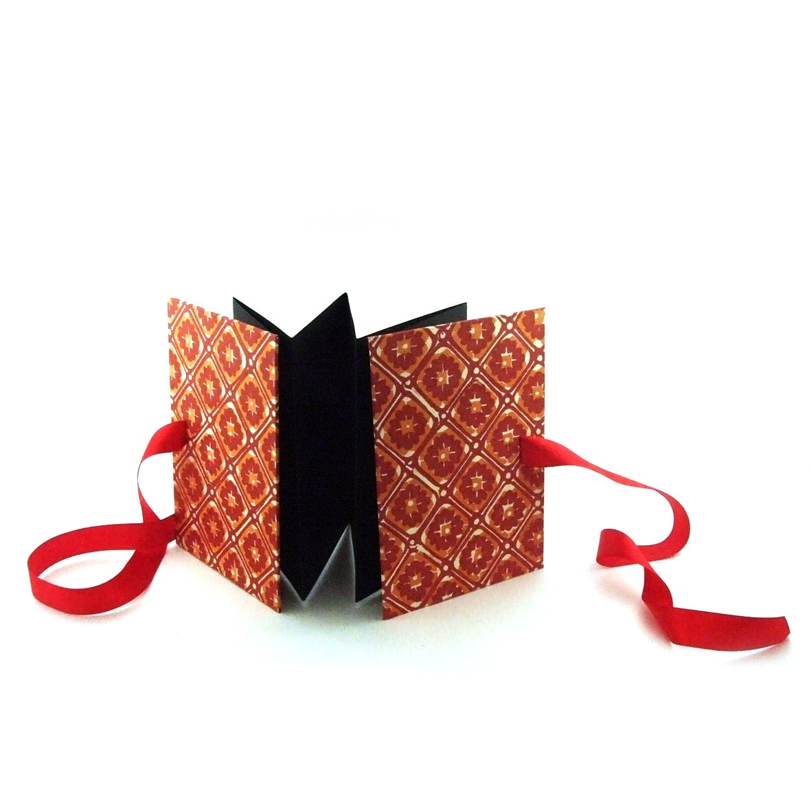 Leporello aus festem Buchbindekarton von Hand mit Florentiner Papier bezogen. Es wird mit einem festen Satinband zusammengehalten.