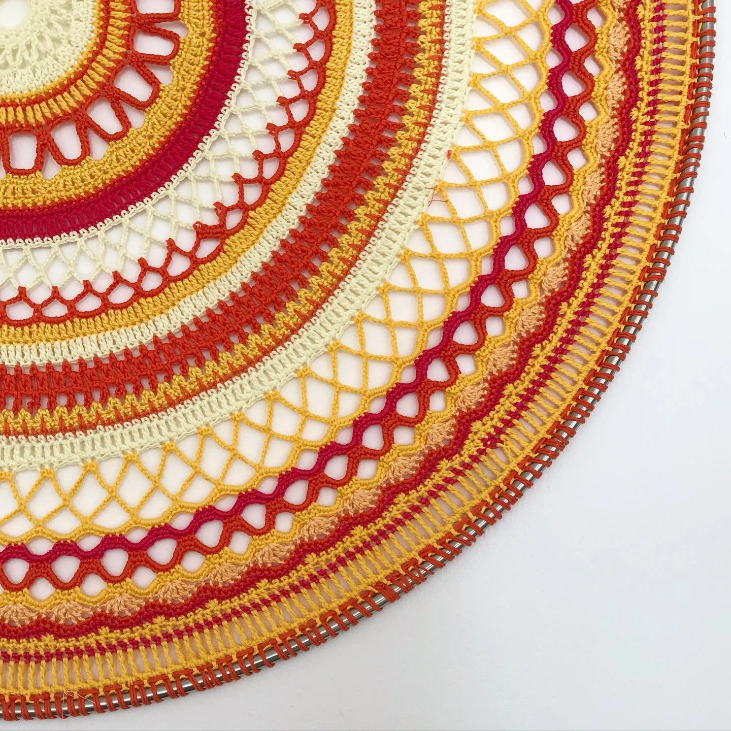 Dieses große gehäkelte Mandala lässt die Sonne auch bei Regenwetter scheinen.