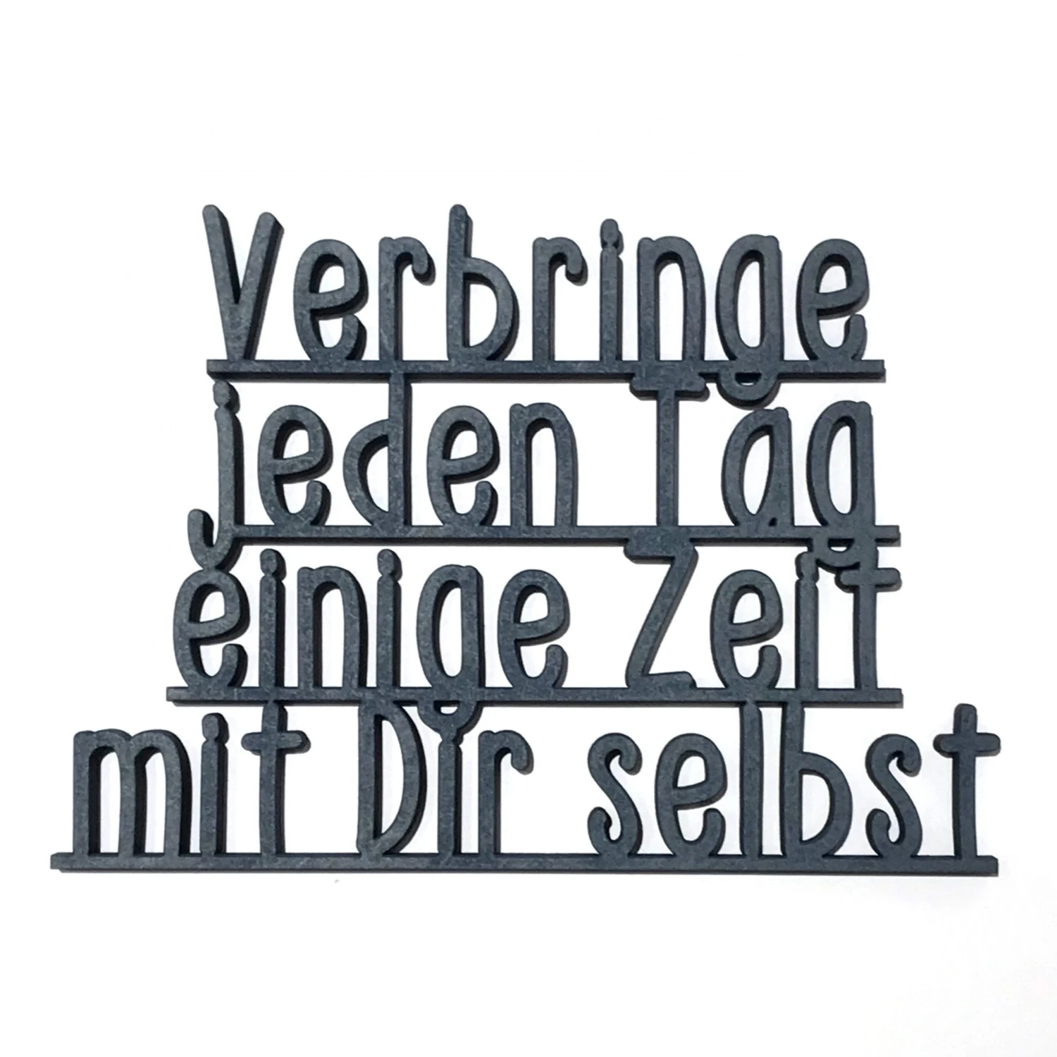 Schöne gelaserter Schriftzug aus MDF in Jeansblau lackiert als Wanddekoration.