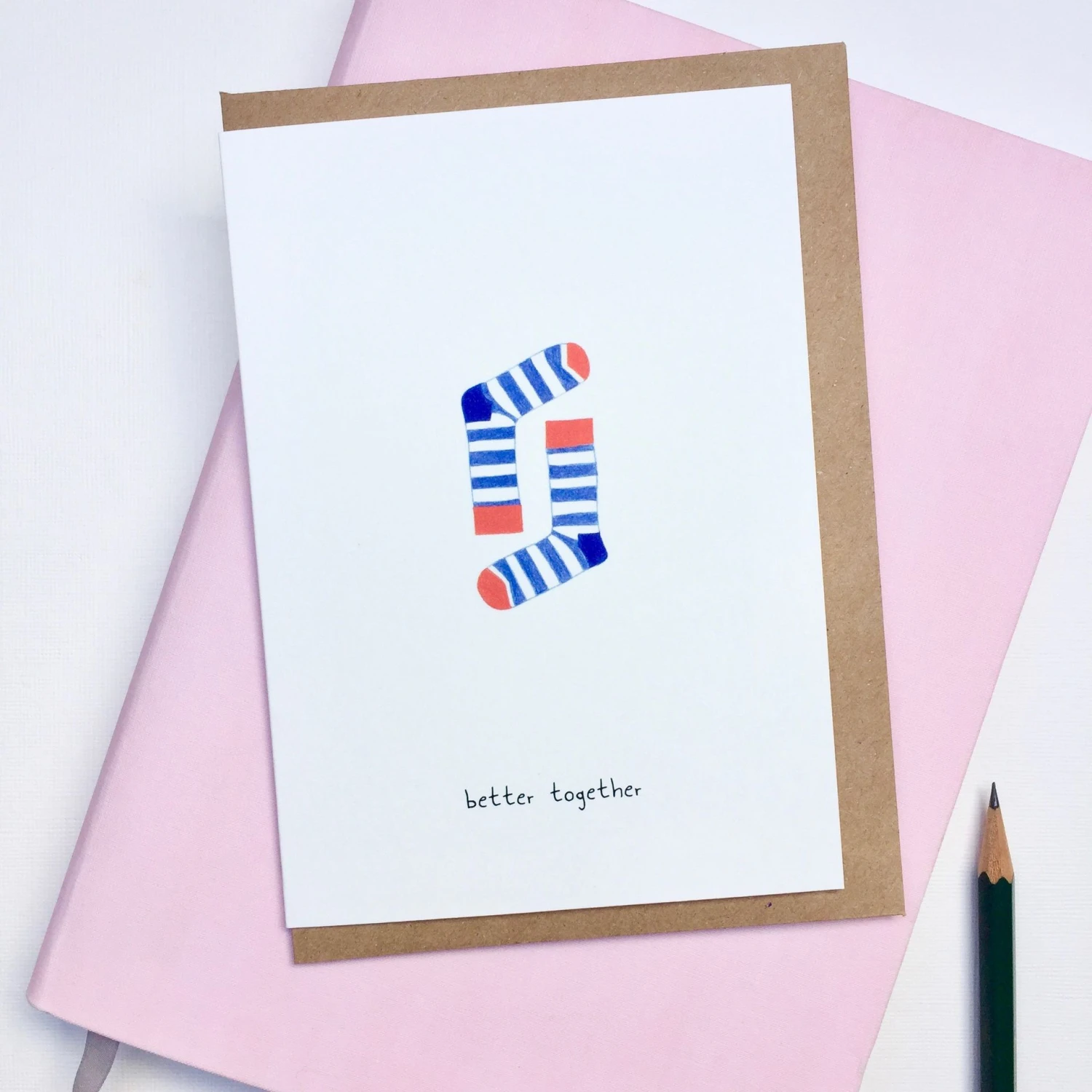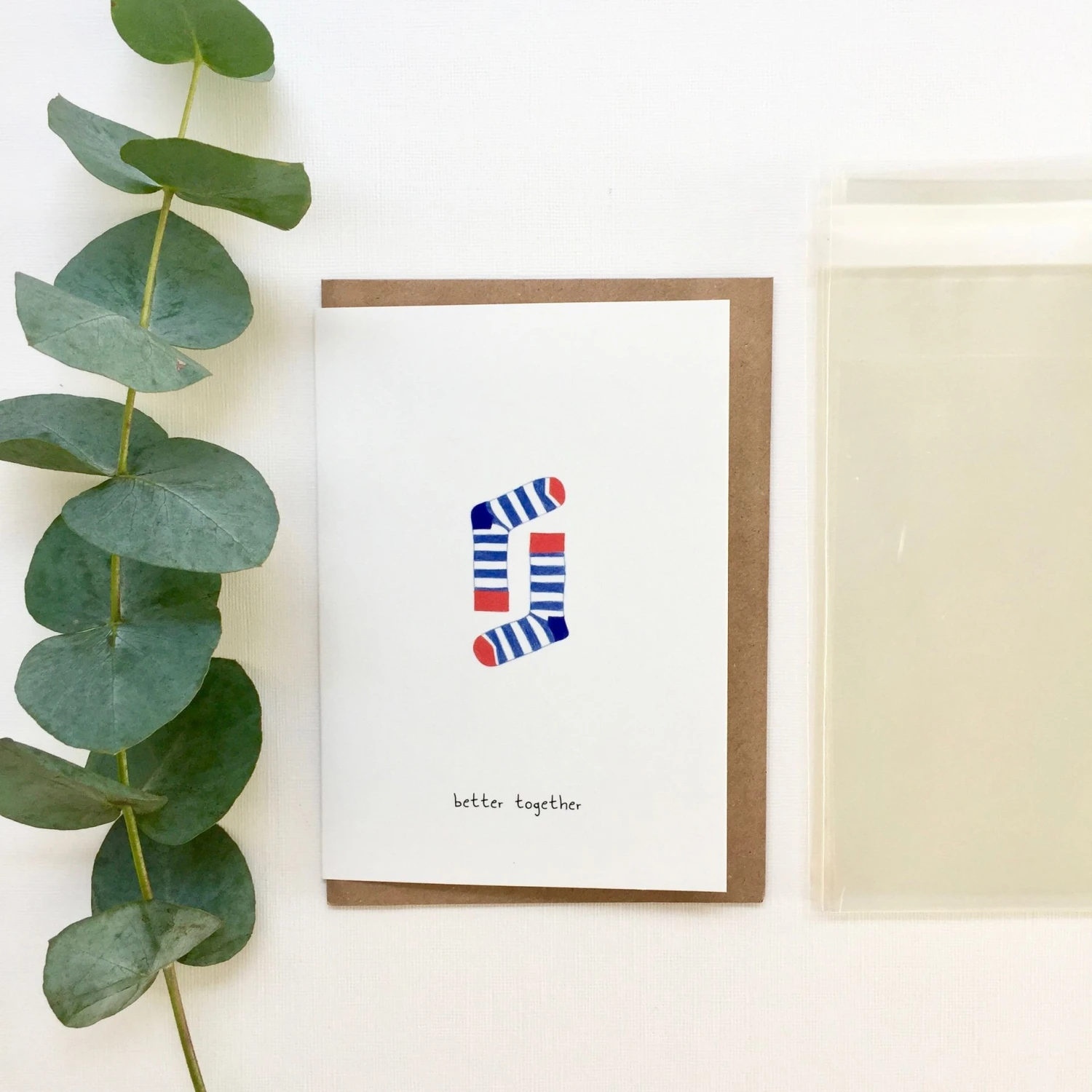 Grußkarte für den „Perfect partner in crime“. Symbolisch ein Paar Ringelsocken.