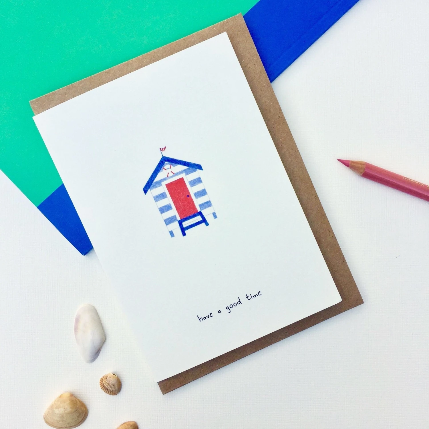 “have a good time“ ist eine Grußkarte mit Strandhütte.
