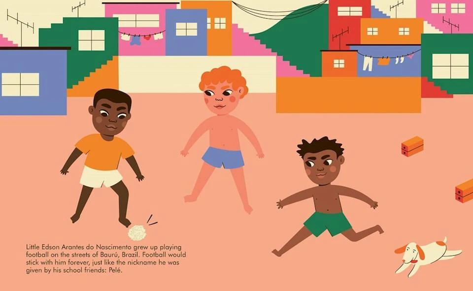 With a sock full of rags for a ball, Pelé honed his skills in a poor neighborhood in Brazil. He believed that, one day, he would lead his country to World Cup victory—and he was right! With Pelé and his super skills on the team, Brazil lifted the trophy three times. Today, he is widely regarded as the greatest soccer player who ever lived—and a hero off the pitch, too, using his voice to help the people who need it most. This inspiring book features stylish and quirky illustrations and extra facts at the back, including a biographical timeline with historical photos and a detailed profile of The King’s life.