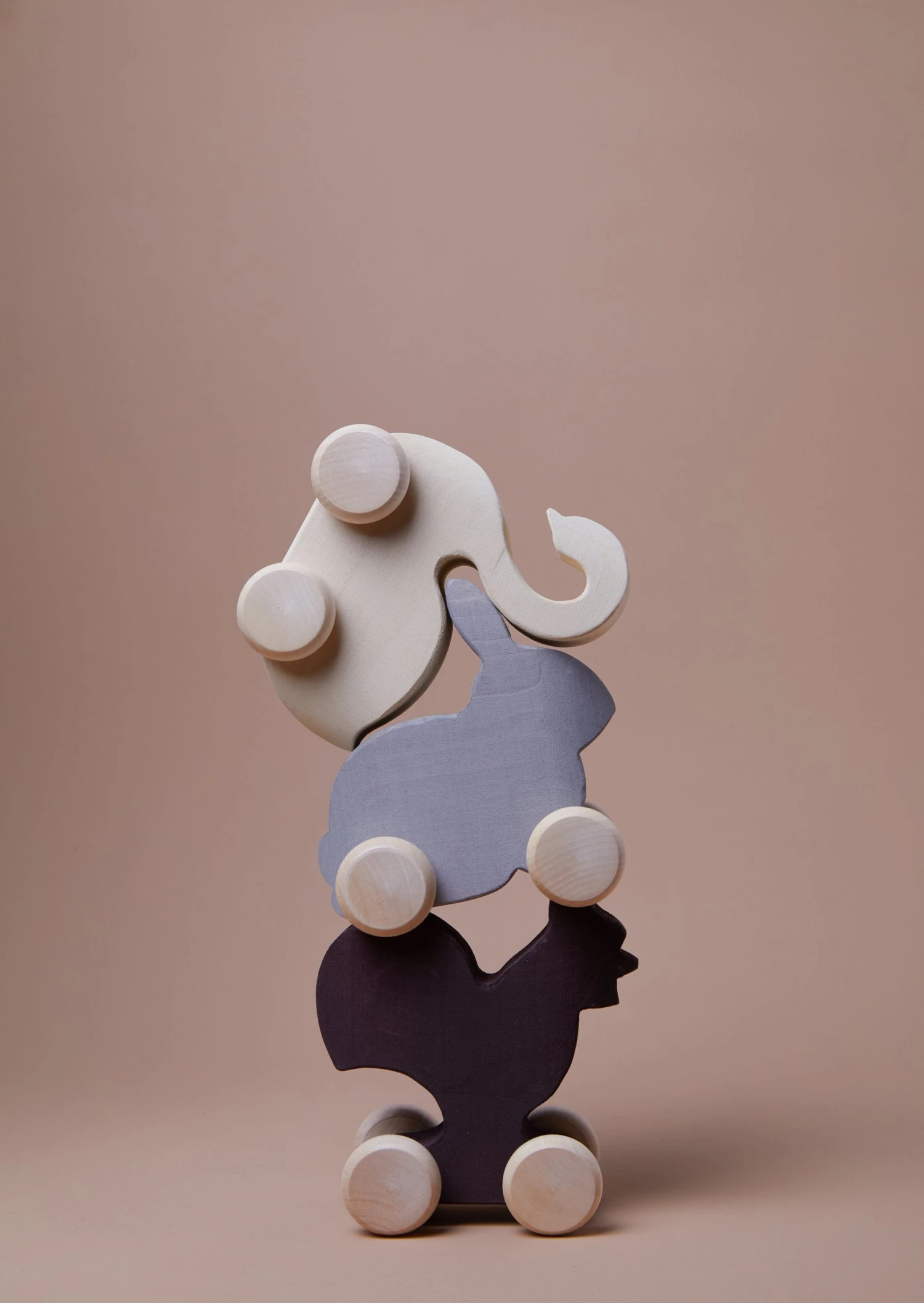 Die Raduga Grez Spielzeuge sind aus sonnengedrocknetem Lindenholz hergestellt. Mit sicherer Farbe bemalt und nicht lackiert. So bleibt die samtige Textur des Holzes erhalten.