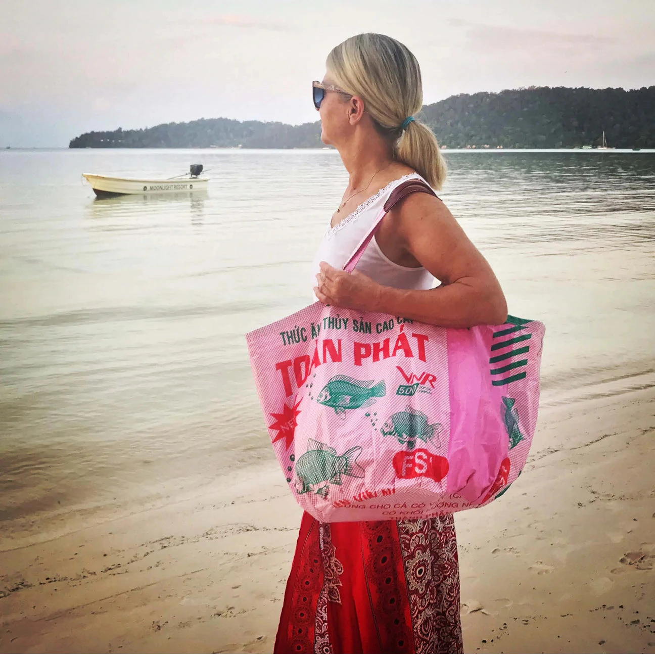 Als die gebürtige Salzburgerin Sissi Vogler 2012 auf Reisen ging, lernte sie stabile Fischfuttersäcke zu schätzen. Zurück in der Heimat kam ihr die Idee diese als Material zu stabilen Taschen zu verarbeiten. Und mit dieser Idee wurde ihr nachhaltiges Fair Trade Projekt in Kambodscha geboren. Bei Refished wird gebrauchten Materialien neues Leben eingehaucht. Als Kunde erfährst Du wer Deine Tasche genäht hat.