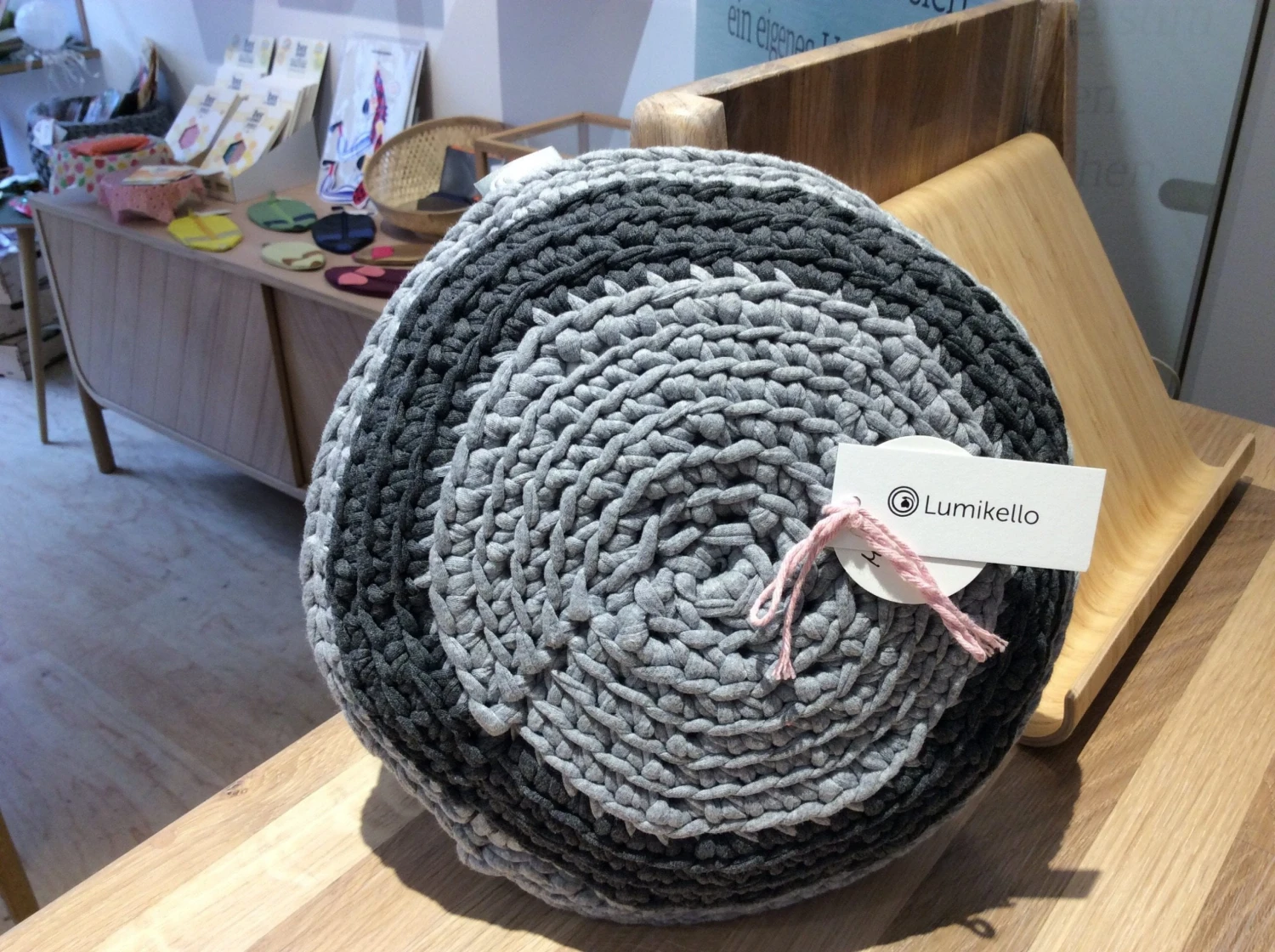 Die wunderschönen Kissen von Lumikello strahlen nicht nur wegen ihrer tollen Farbkombinationen. Sie tun dabei sogar der Umwelt etwas Gutes. Das verhäkelte Materal besteht aus Resten der Textilindustrie und alten Spannbetttüchern. Das Innenleben ist aus wieder abbaubarer Maisfaser.