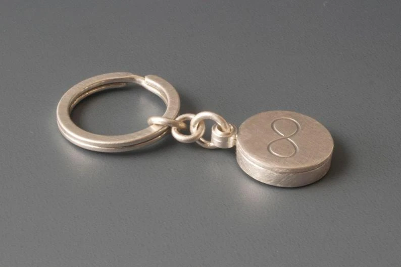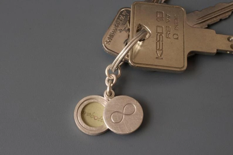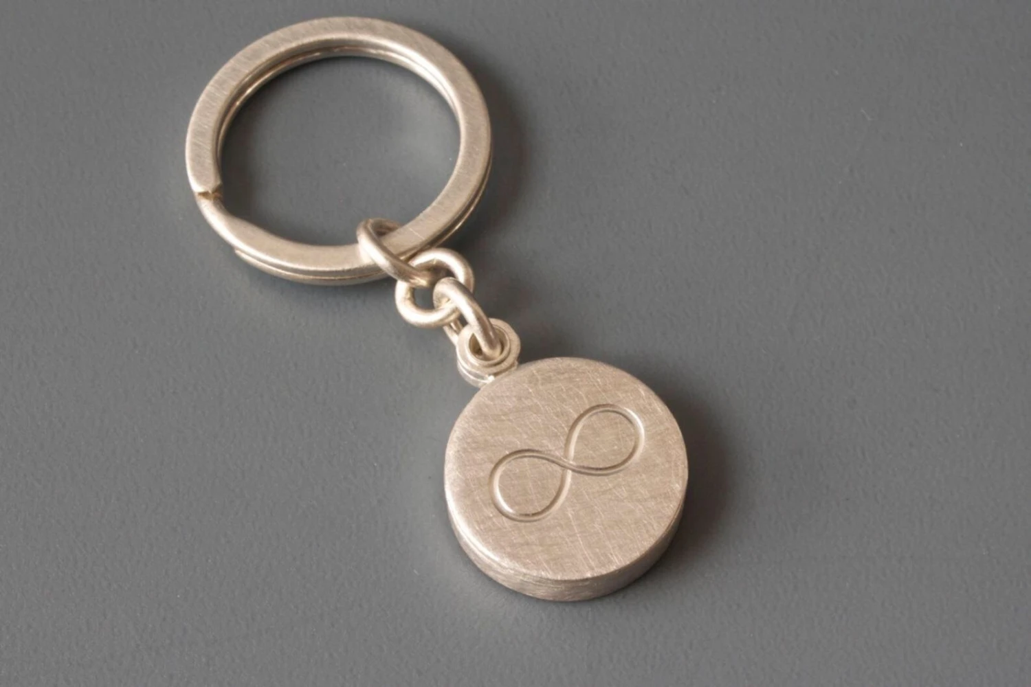 Ein silbernes Medaillon als Schlüsselanhänger.