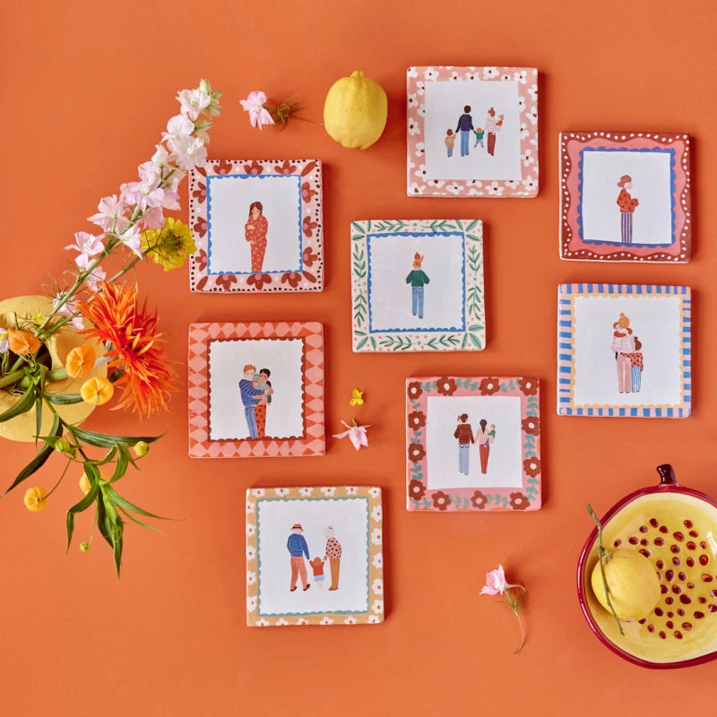 Die StoryTiles Fliesen- Serie von Joëlle Wehkamp hat sich der Familie verschrieben. Jede Fliese der 8-teiligen Serie mit den bunten Rahmen sprüht nur so vor Lebensenergie.
