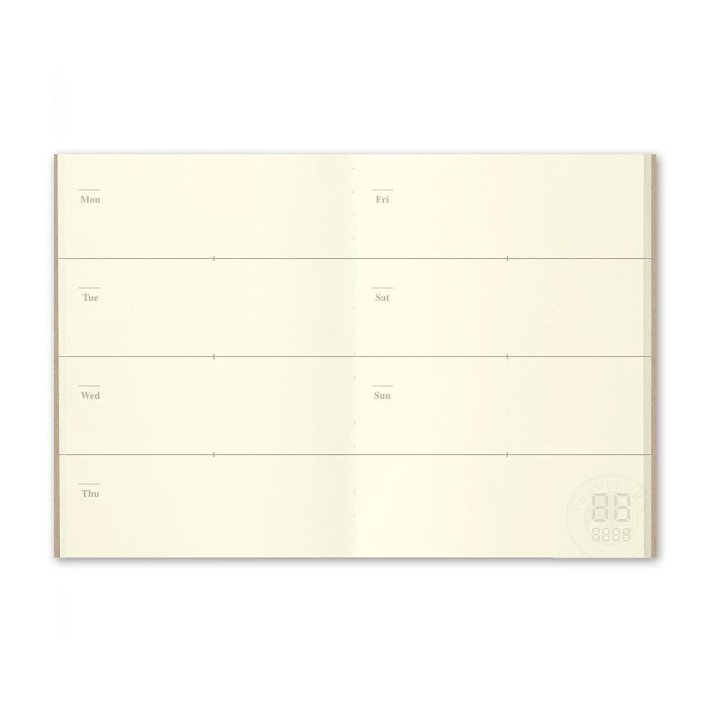 Undatierter Wochenkalender. Die Tage sind in Zeilen angeordnet. Eine Woche findet Platz auf zwei Seiten. Der Kalender ist für 28 Wochen und eignet sich besonders, wenn Du einen Kalender für einen bestimmten Zeitraum führen möchtest.