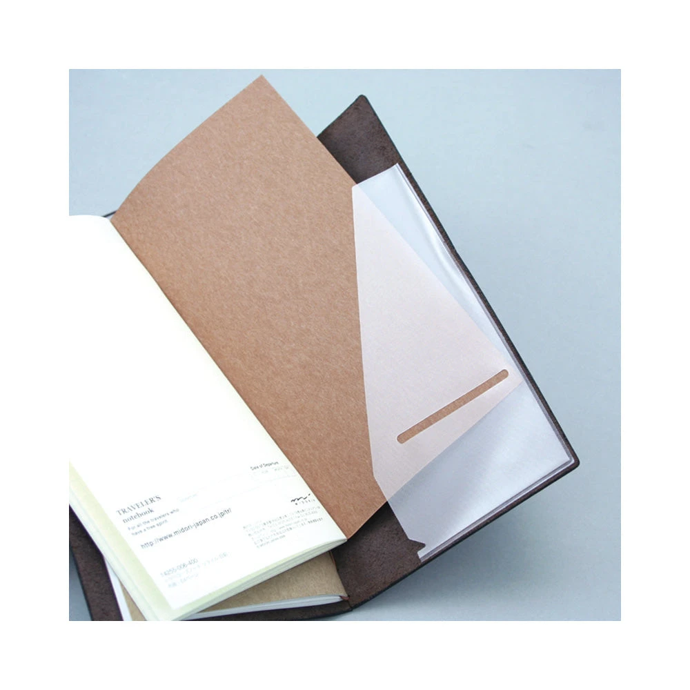 Eine Selbstklebende Einschub- Tasche für das Traveler’s Notebook in „regular“.
